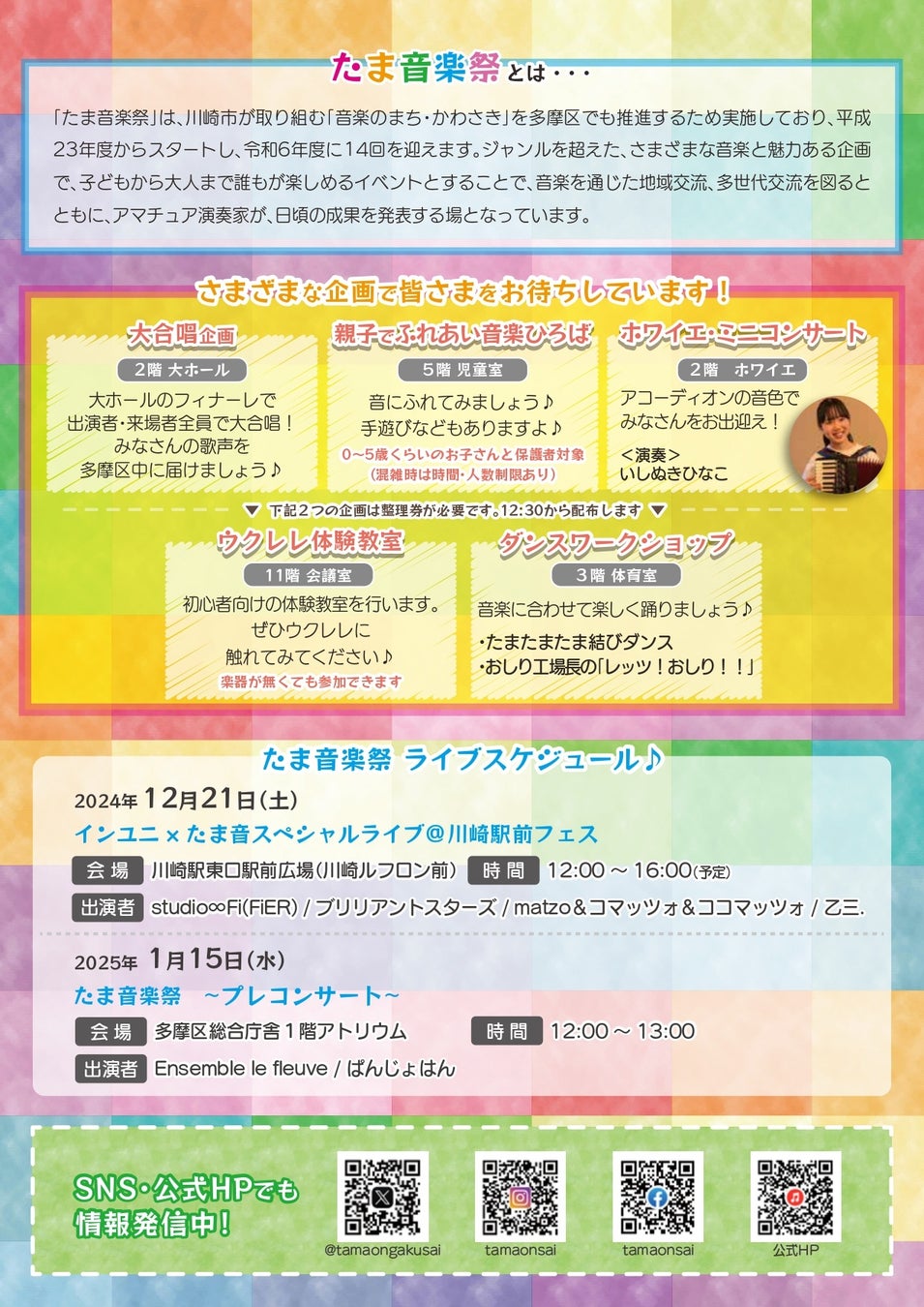 地域の多様な繋がりが奏でる「音楽のまち・かわさき」 第14回たま音楽祭 ~弾ける カラフル ワンダフル♪ ~ 2025年1月18日開催