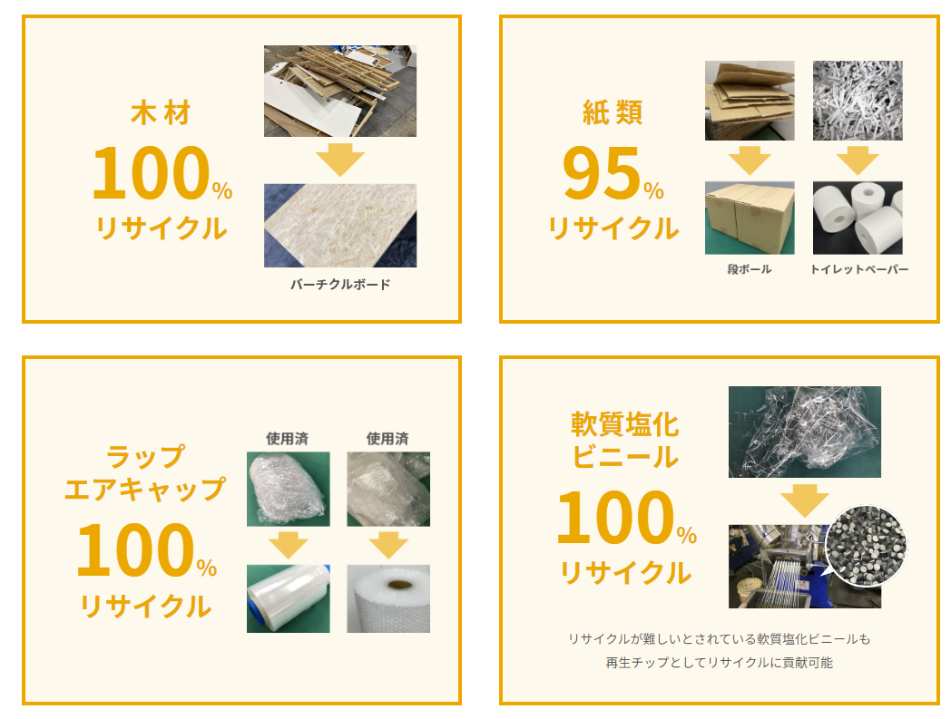 再資源化できる廃棄物を分別、協力会社に受渡し新たな製品の原料として再利用できるよう取り組んでおります。