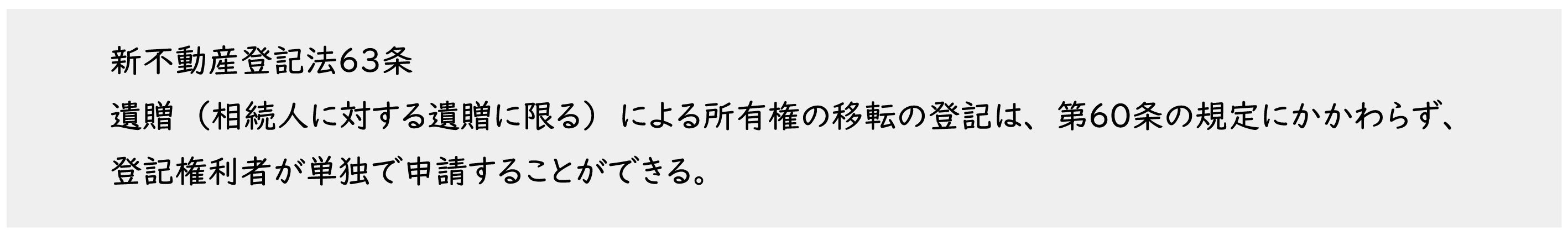 条文の通り、単独申請できるのは受贈者が相続人である場合に限られるので、相続人以外の人に対する「遺贈」は今まで通り共同申請が必要です。