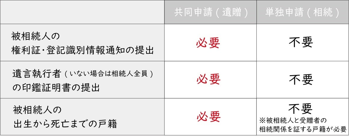 何がって、まず「義務者の協力が不要」。この違いは大きいです。そして必要書類にも違いがあります。