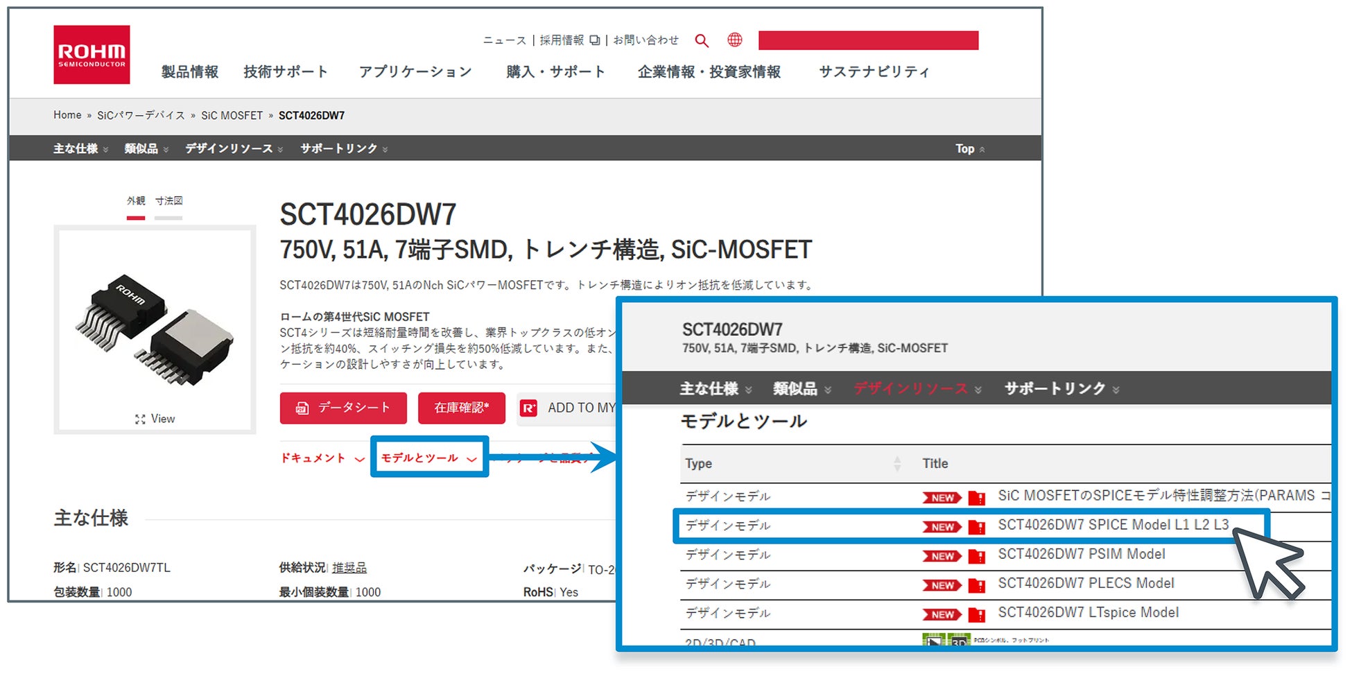 「ROHMレベル3 (L3)」の第4世代SiC MOSFETモデル(37機種)は、2025年4月よりWebサイト上で公開しており、製品ページ等からもダウンロードが可能です。新モデルL3提供後も、従来モデルも並行して提供します。また、使い方を記したホワイトペーパーも掲載しており、スムーズな導入をサポートします。