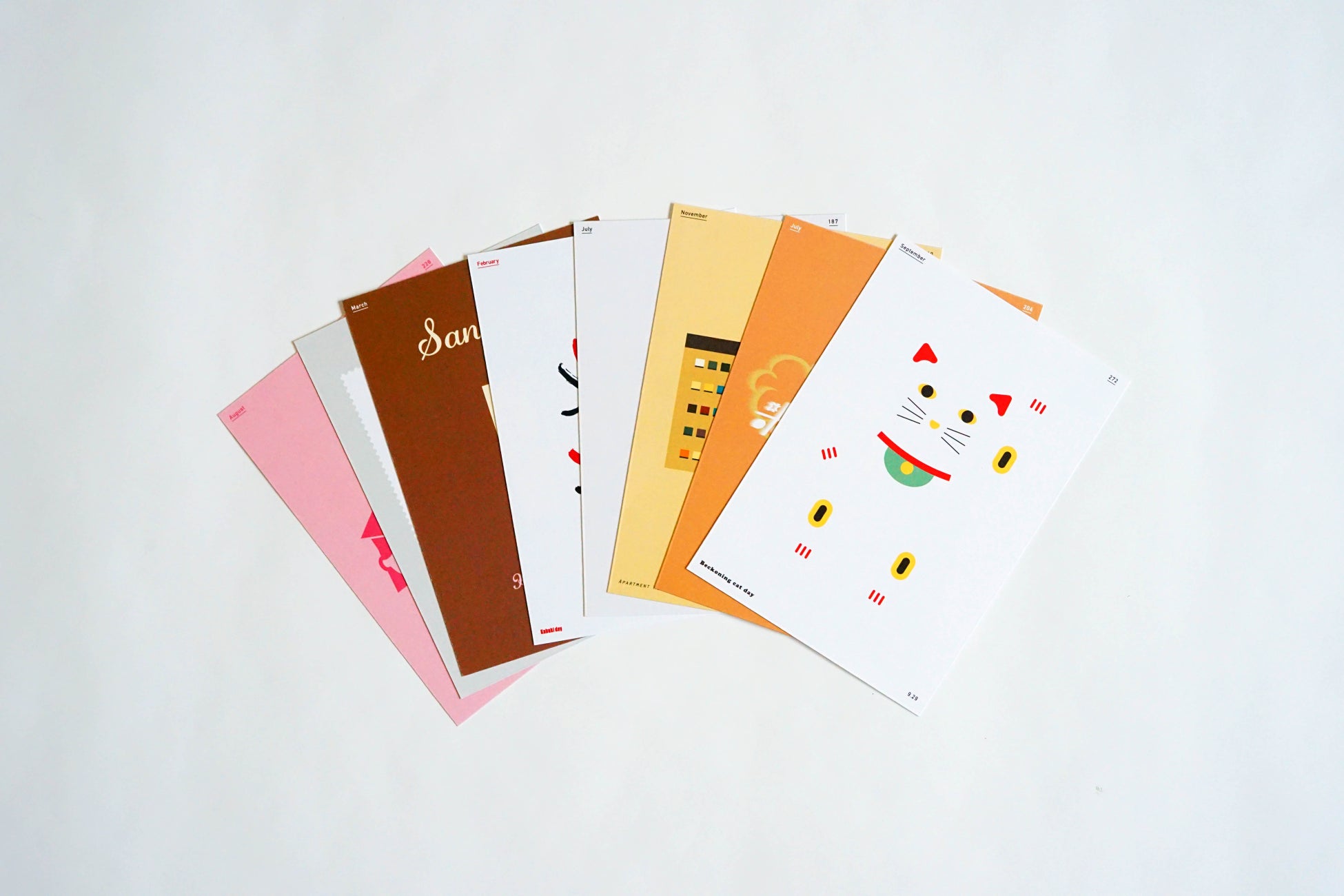 2017年から自主企画として「365日今日は何の日」をテーマに、1日1日の記念日の意味をデザインに込めて、毎日制作を行っています。今回、mocco加古川さんでは、2017年のポスター作品をポストカードサイズで展示しています。