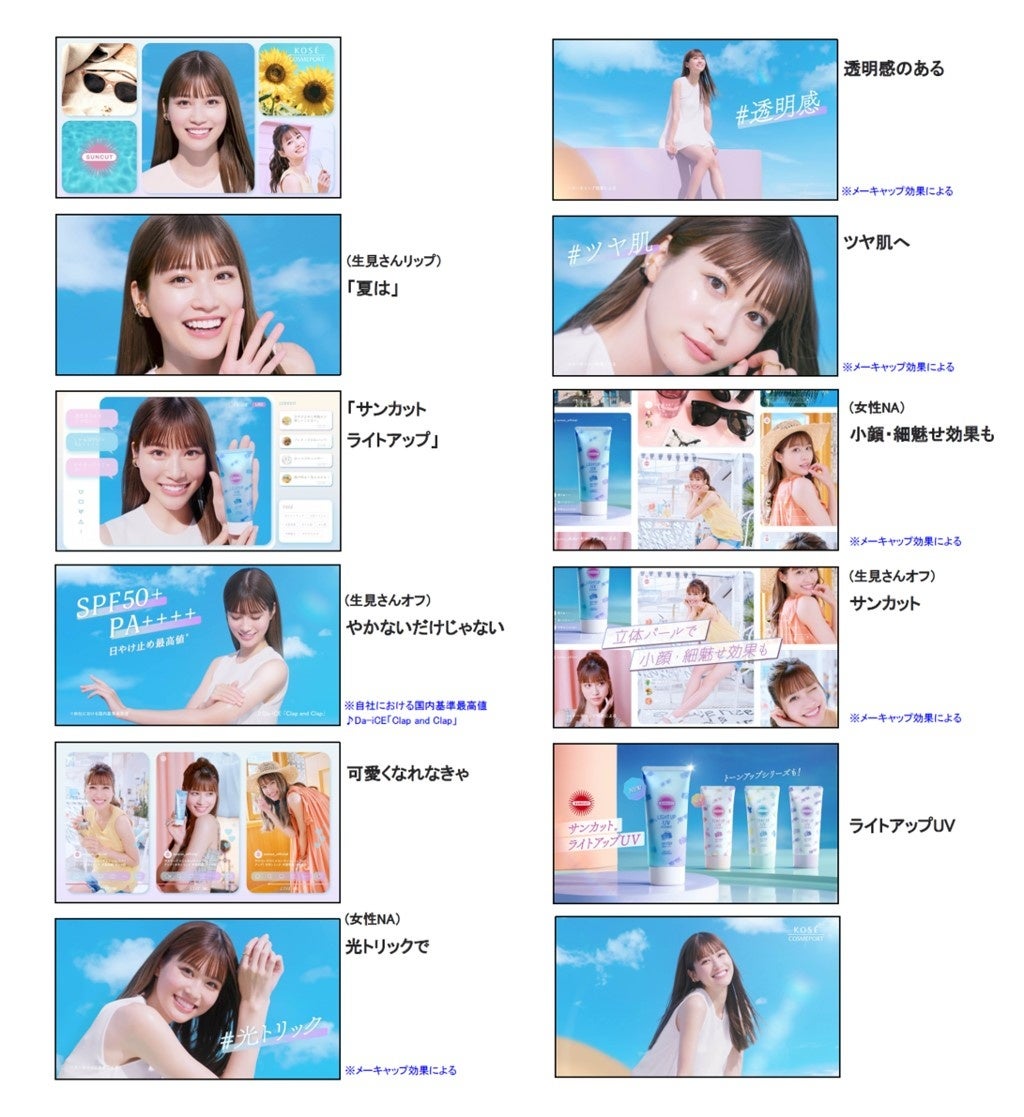 コーセーコスメポート株式会社(代表取締役社長:小林孝雄)は、日やけ止めブランド『サンカット®』シリーズの新商品として「サンカット® ライトアップUV エッセンス」を2月1日(火)に発売します。また、商品の発売に伴い、モデルの生見愛瑠さんをイメージキャラクターとして迎えた新CMを作成しました。新CM『タイムライン』篇は、1月28日(金)よりYouTubeチャンネルにて先行公開、4月1日(金)より全国TVCMにて放映を開始します。また、本CMのために書き下ろされた、5人組男性アーティスト「Da-iCE」の新曲「 Clap and Clap 」にもご注目ください。