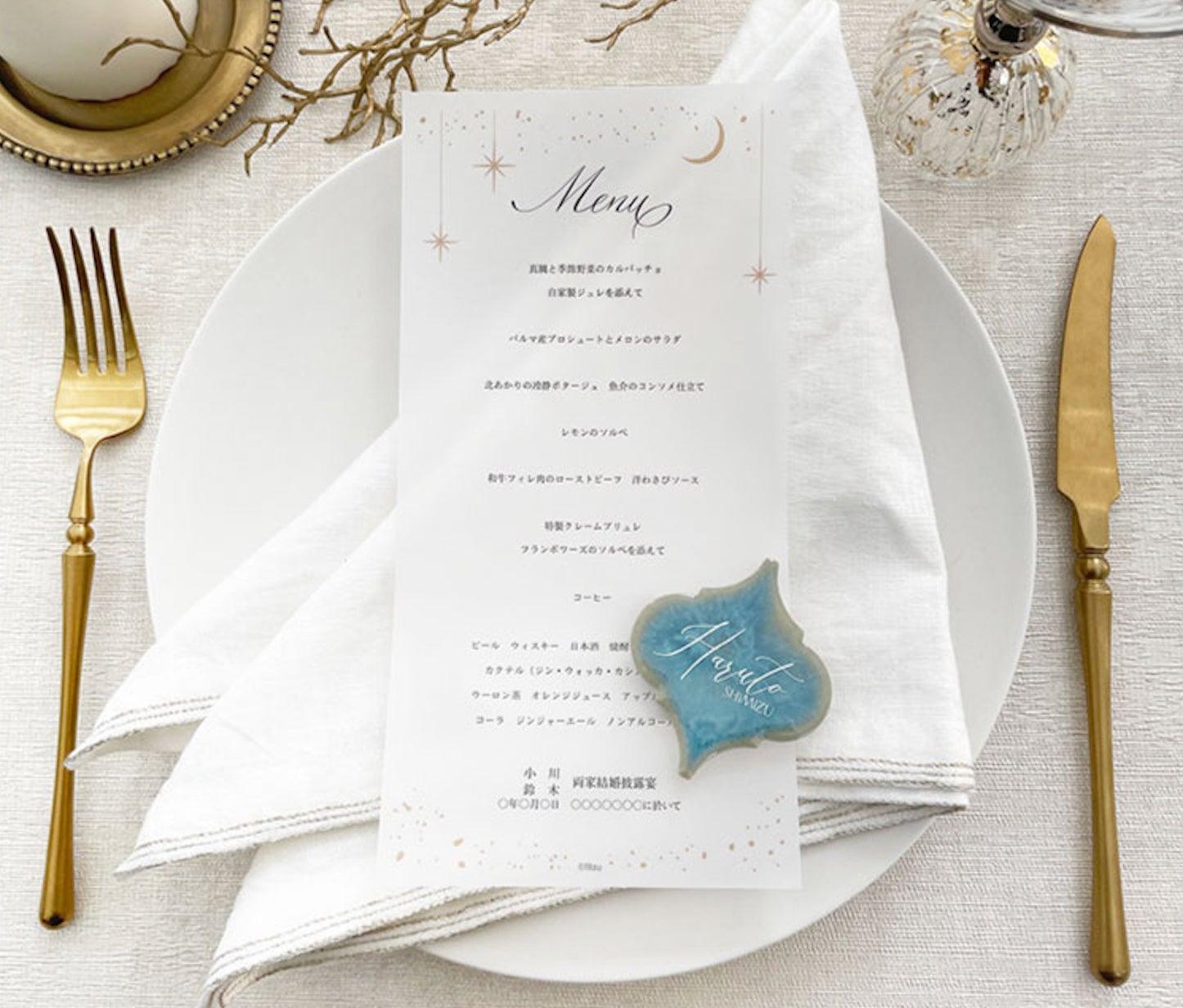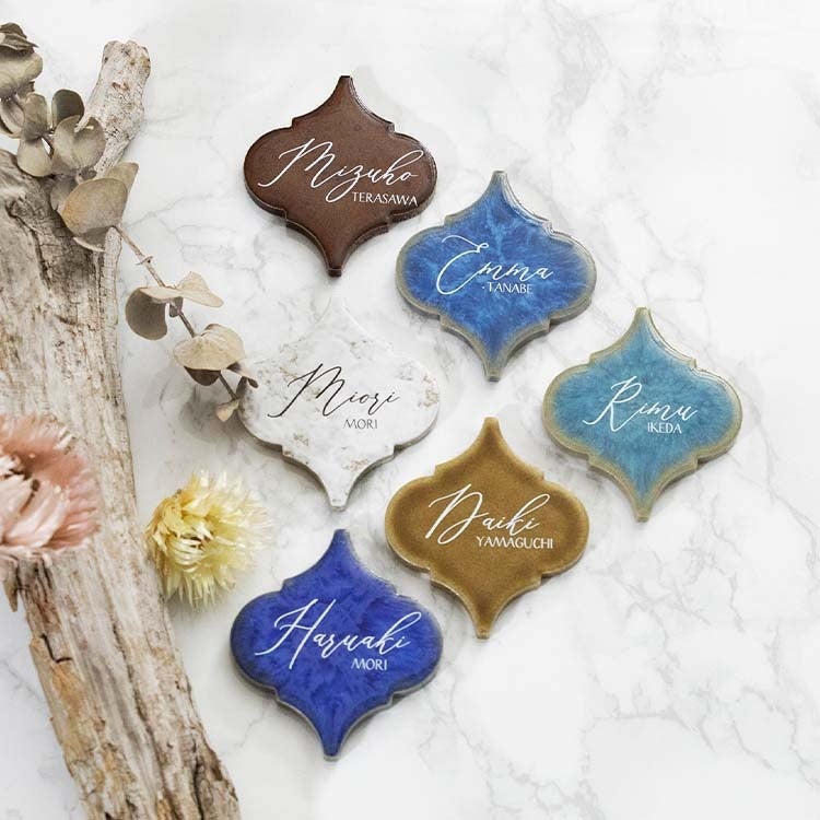 しかし最近では、タイル素材などを使用したこれまでとは異なった席札を用意する花嫁さんが増えてきておりSNS等でトレンドとなっています。