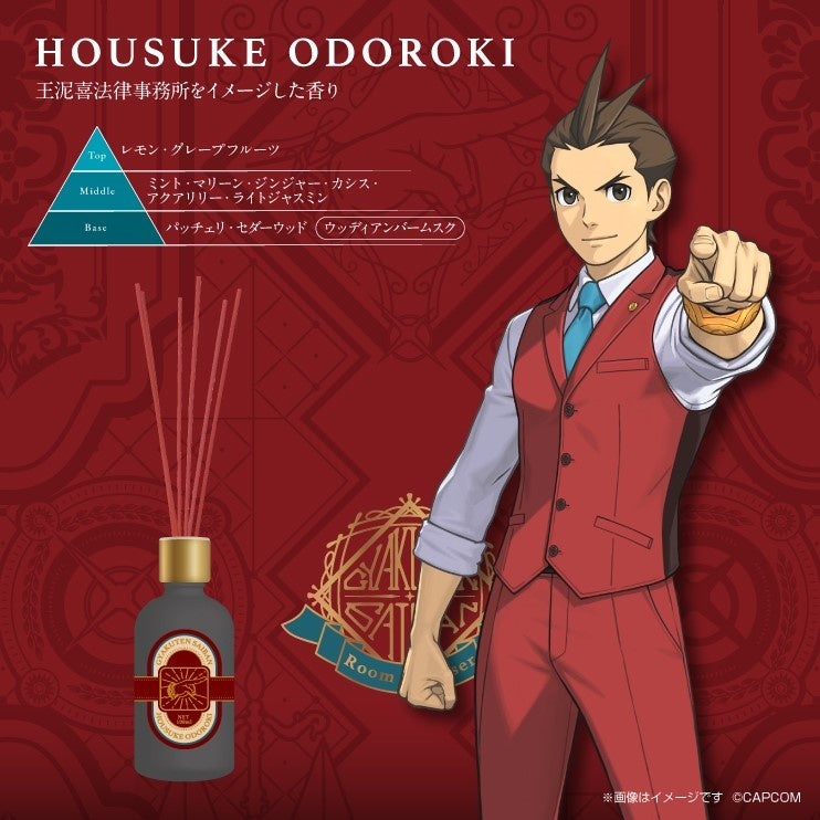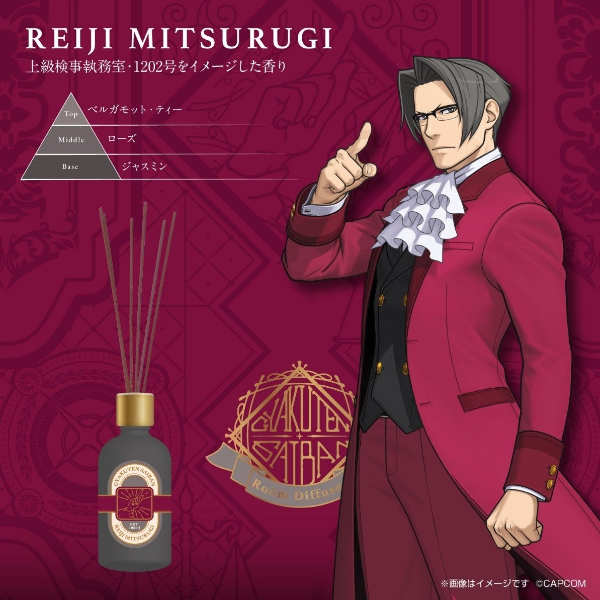 『逆転裁判456 王泥喜セレクション』の人気キャラクター 「成歩堂龍一」「御剣怜侍」「王泥喜法介」「牙琉響也」「夕神迅」を モチーフにしたディフューザーが新発売!