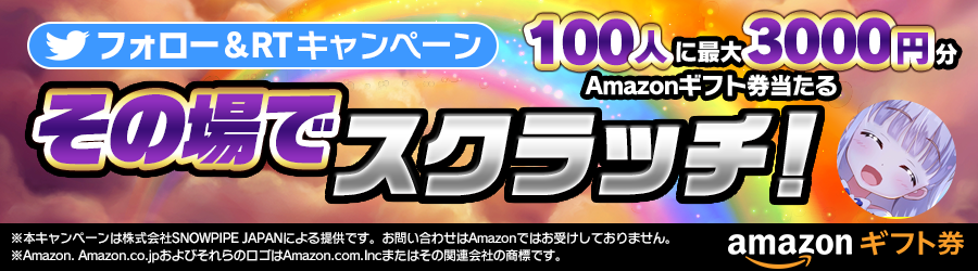 最大3000円分のAmazonギフト券が当たるスクラッチを削るイベントです。