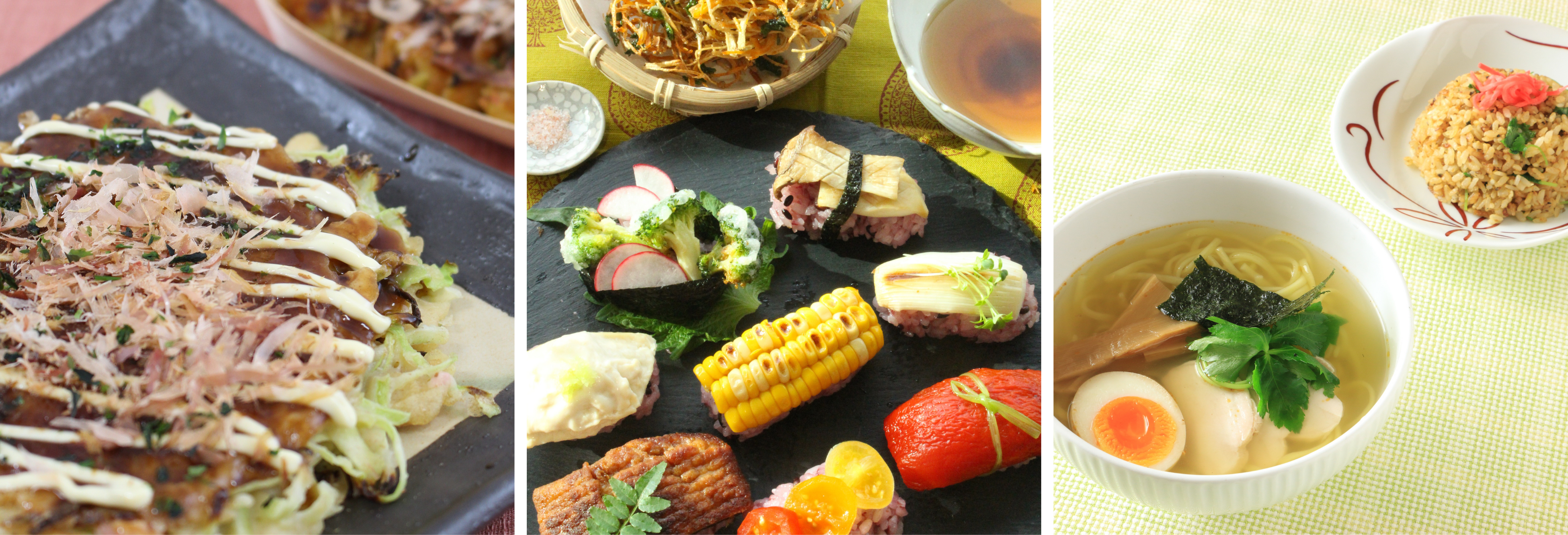 料理教室では、日本‧関西を代表する「たこ焼き」や「お好み焼き」、「寿司」、「ラーメン」の調理体験を中心に、プロの講師による指導のもと、参加者が一から調理を楽しめるプログラムを予定しています。