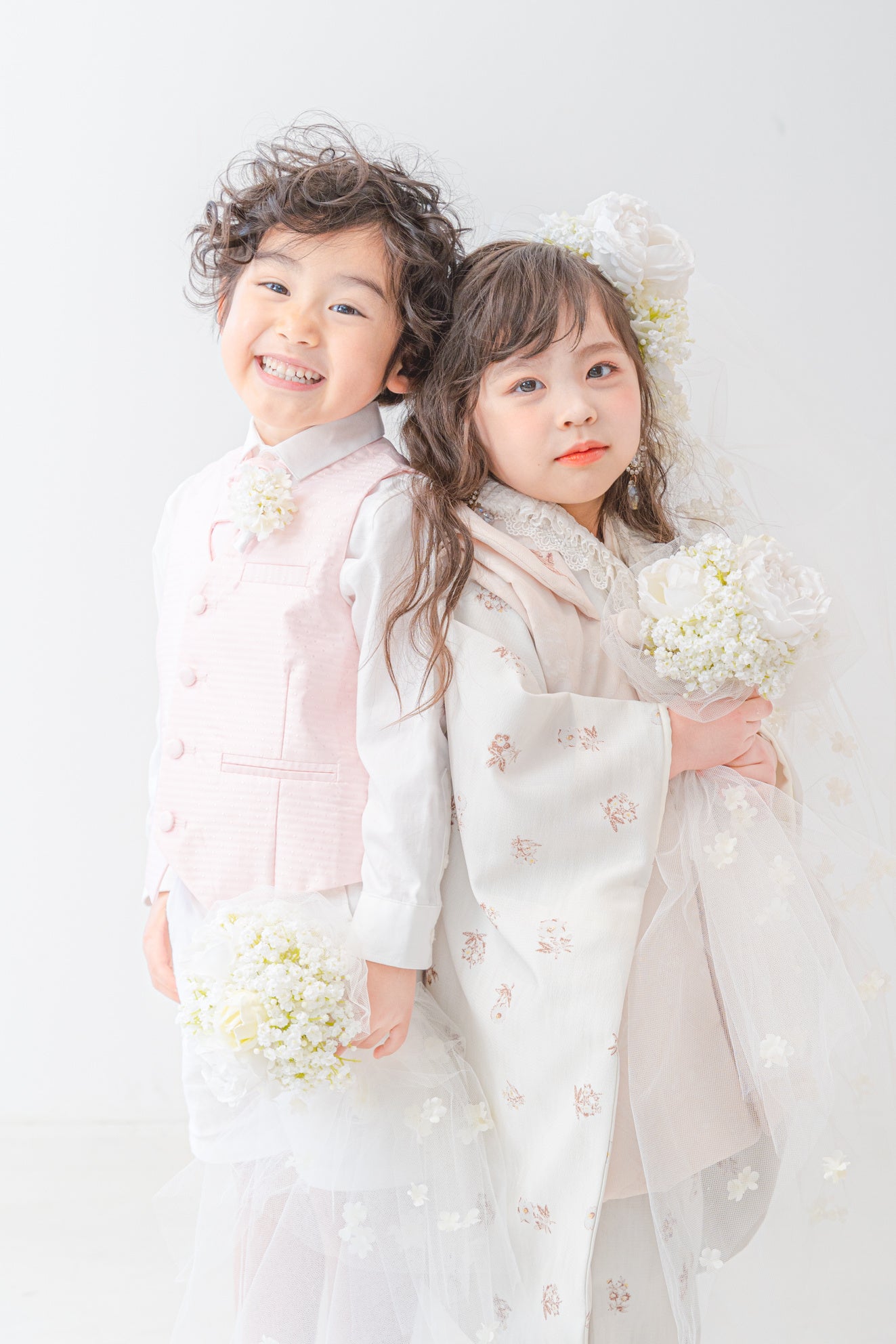 花言葉は「無邪気」「清らかな心」「幸福」と言われています。「美わし(ウルワシ)の七五三"風のかをり"」プランは、赤ちゃんの吐息のようなかすみ草のベールを纏わせて、