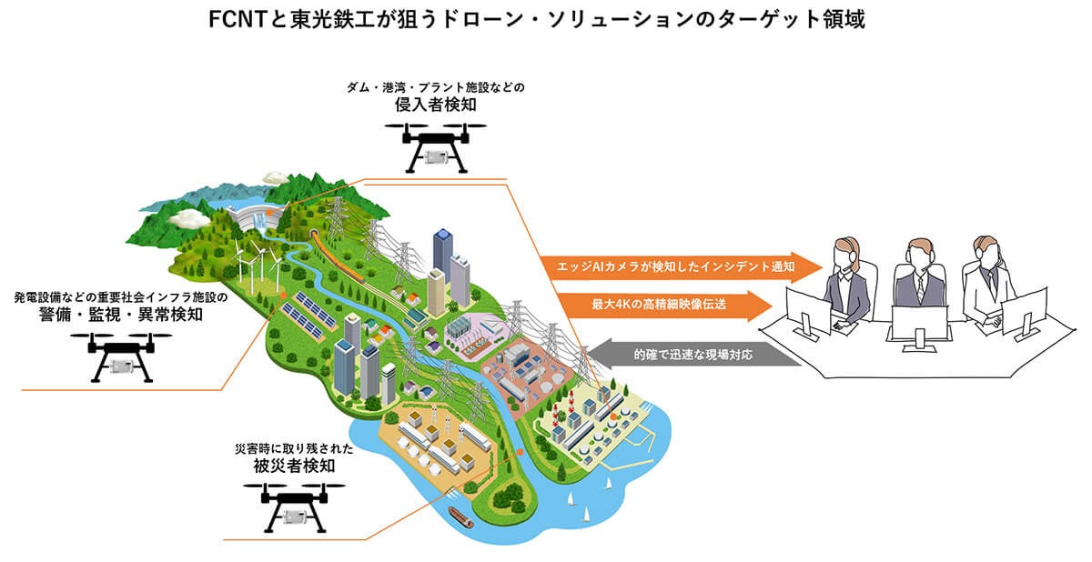 FCNTと東光鉄工、5G対応エッジAIカメラと国産ドローンを組み合わせた次世代ドローン・ソリューション市場で協創