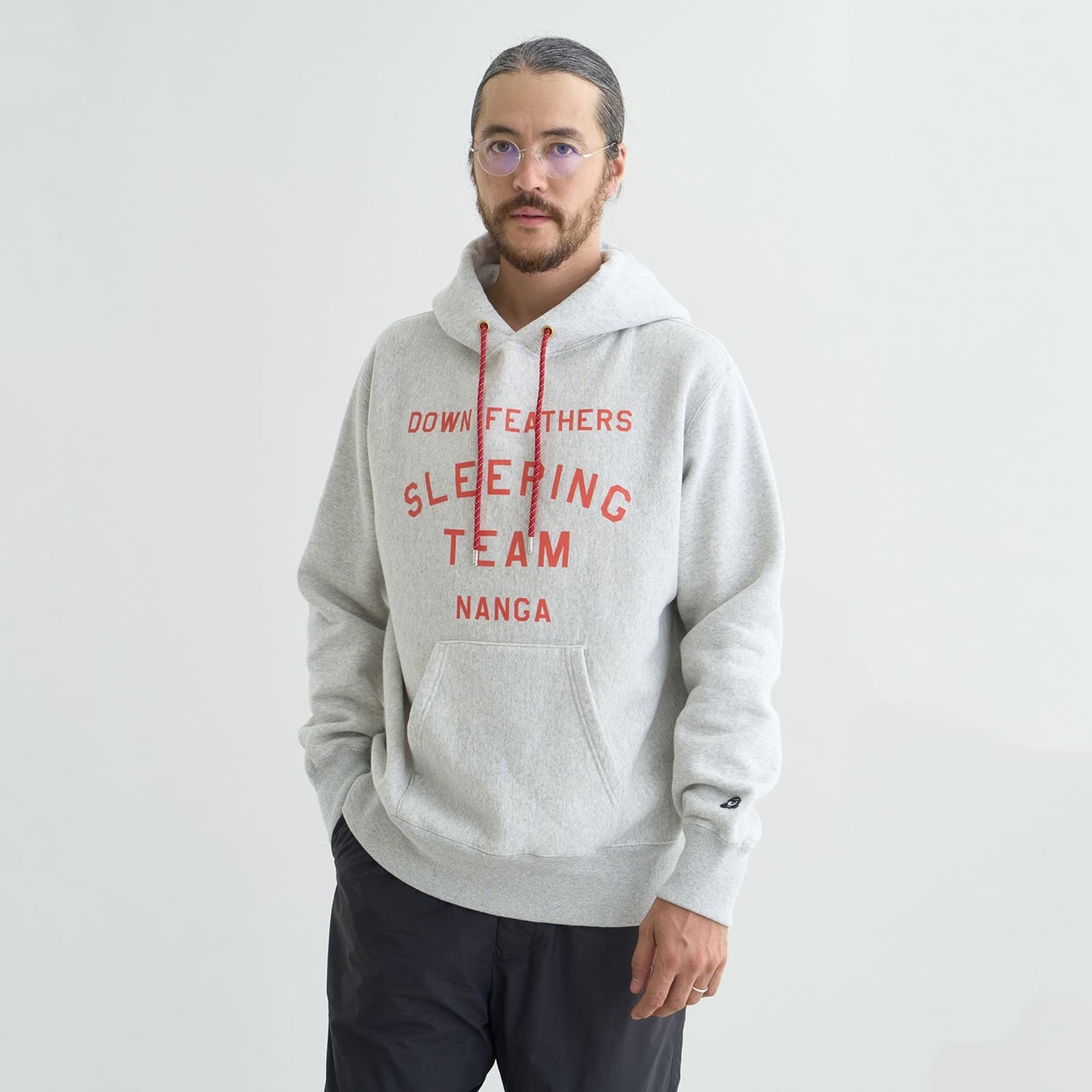 NANGAの定番であるマウンテンロゴを、イラストレーターのジェリー鵜飼氏がアレンジ。頂に氷河を残す険しい山々が、優しいタッチで描かれています。エコハイブリッドシリーズのパーカーは、丈夫で着心地が良く、長期にわたってご愛用いただけます。