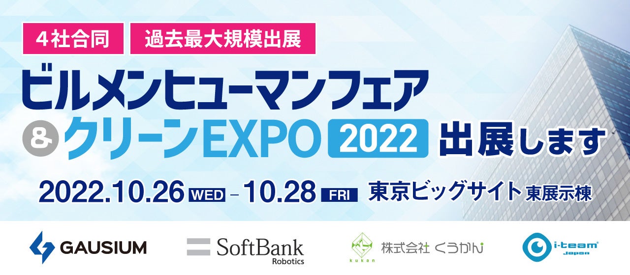 ソフトバンクロボティクス株式会社(本社:東京都港区、代表取締役社長 兼 CEO:冨澤 文秀)は、2022年10月26日(水)から28日(金)に東京ビッグサイトで開催される、日本最大ビルメンテナンス専門展示会「ビルメンヒューマンフェア&クリーンEXPO 2022」に、Gausium(本社:中国上海、代表:Cheng Haotian)、株式会社くうかん(本社:東京都北区、代表取締役:有賀 博夫)、i-team Japan株式会社(本社:東京都中央区、代表取締役:有賀 博夫)との4社合同で初出展し、清掃ロボットを含む、施設清掃の効率化をサポートするさまざまなソリューションを展示します。
