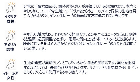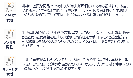 ■マシュマロガーゼについて外国人選定員のコメント(一部)