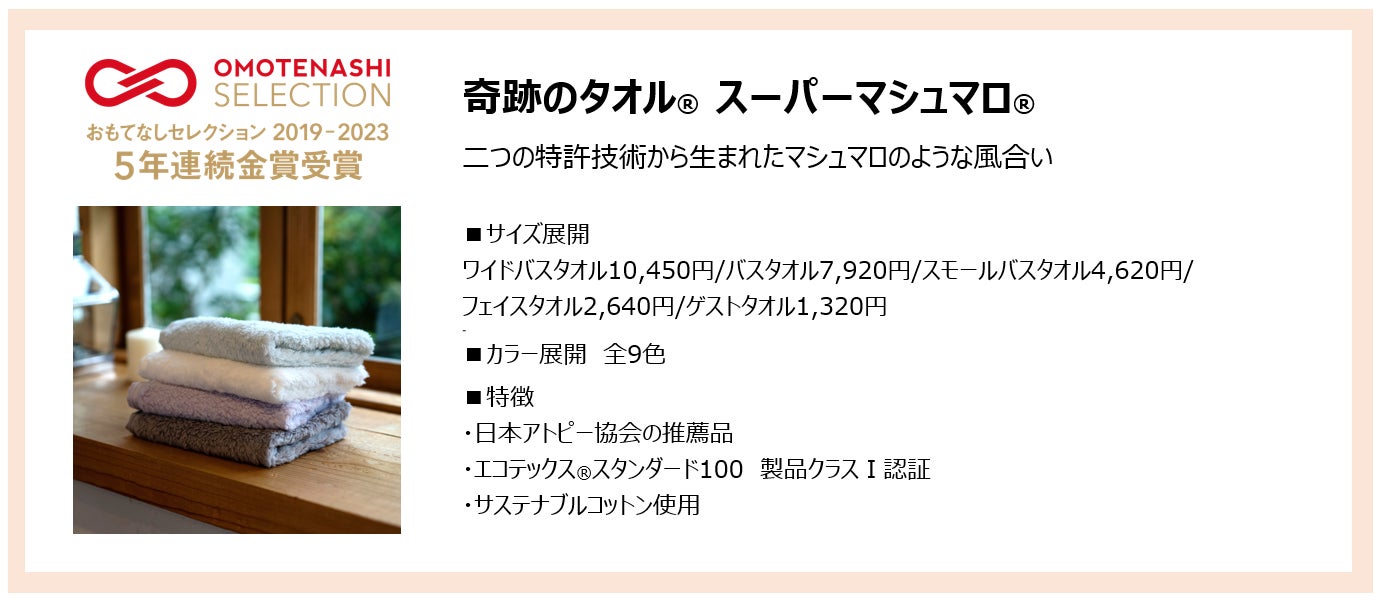史上初!『マシュマロガーゼ®』がOMOTENASHI SELECTION9年連続金賞受賞