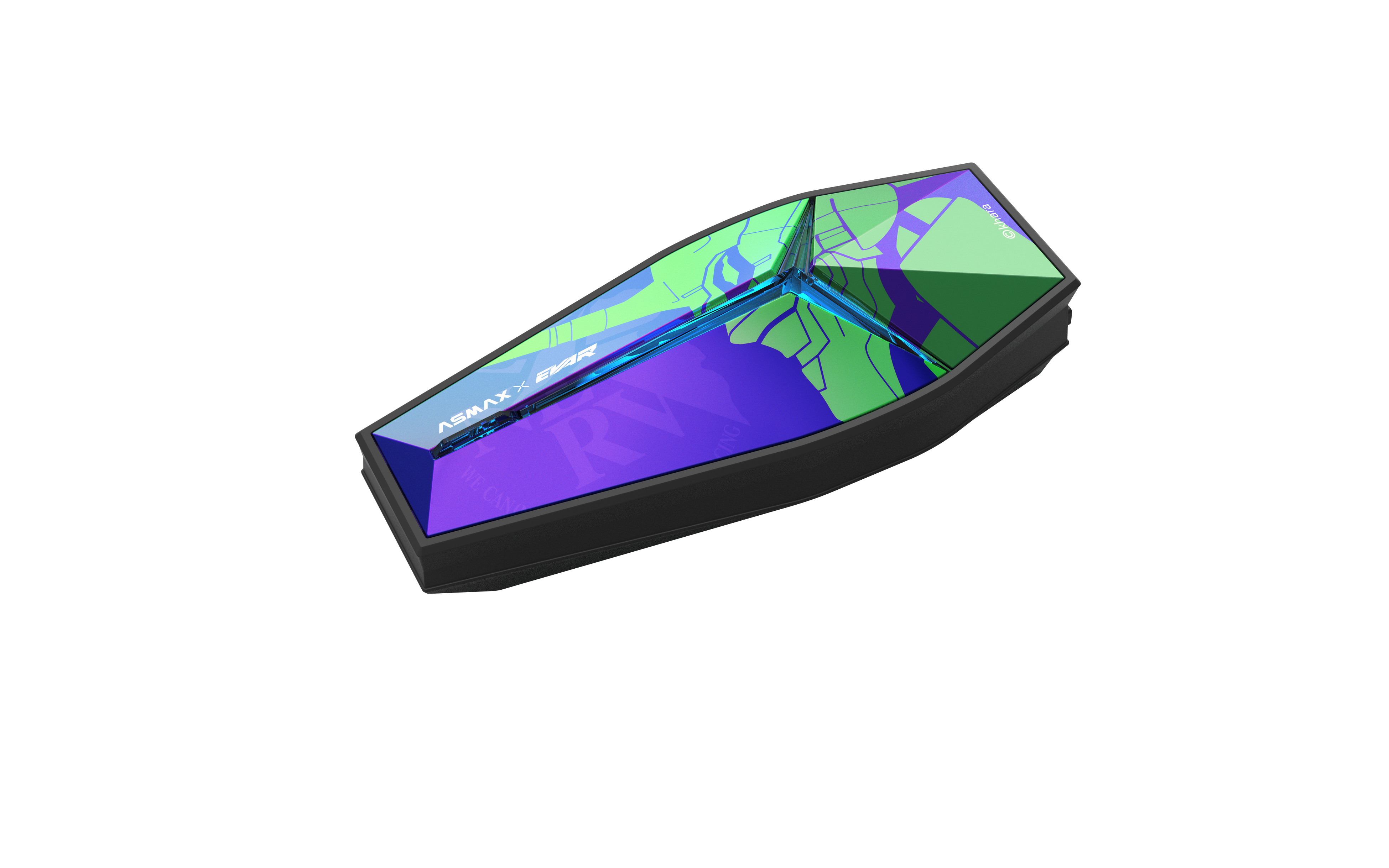 EVA‐01/EVA‐02をモチーフにした特別外装とカラーリングLED(呼吸パルス調)。ヘルメットに馴染む薄型モジュールで、マグネットベースによるストレスフリーな着脱にも対応します。