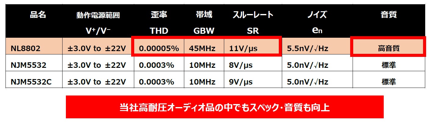 低雑音、高耐圧、2回路入り 高音質オーディオ用オペアンプ 「NL8802」 発売