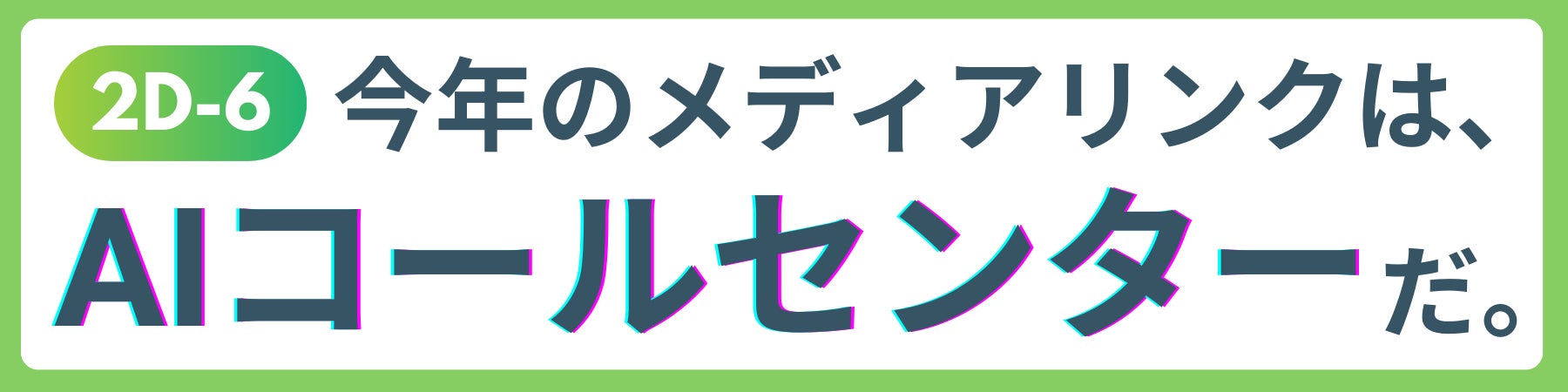 見どころ :「AIコールセンター構想」実現に向け、ChatGPT搭載AIチャットボット『MediaTalkGAI』をはじめとするメディアリンクのAIサービス群、CTIシステム『MediaCalls』、IVRサービス『MediaVoice』、業界のコールセンター応対品質向上サービス『CC Survey』をご紹介します。