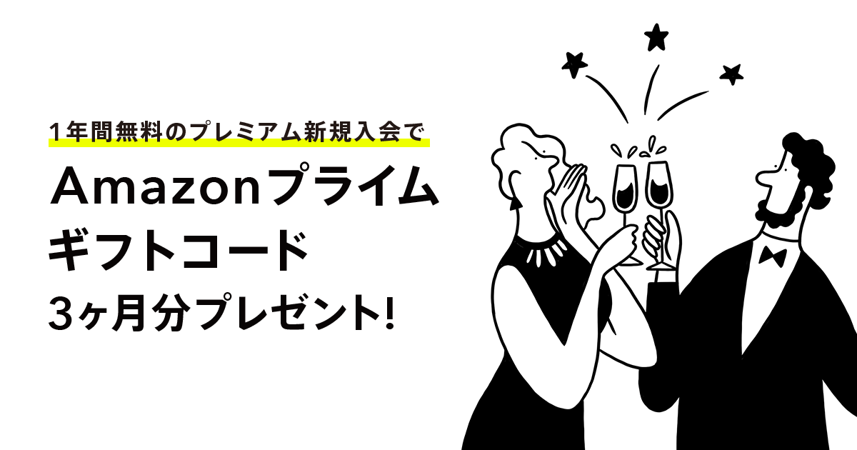 プレミアム新規入会でAmazonプライムギフトコード3ヶ月分プレゼントキャンペーン実施