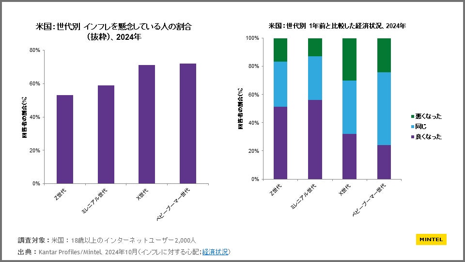 出典: Kantar Profiles/Mintel、2024年10月(インフレに対する心配;経済状況)