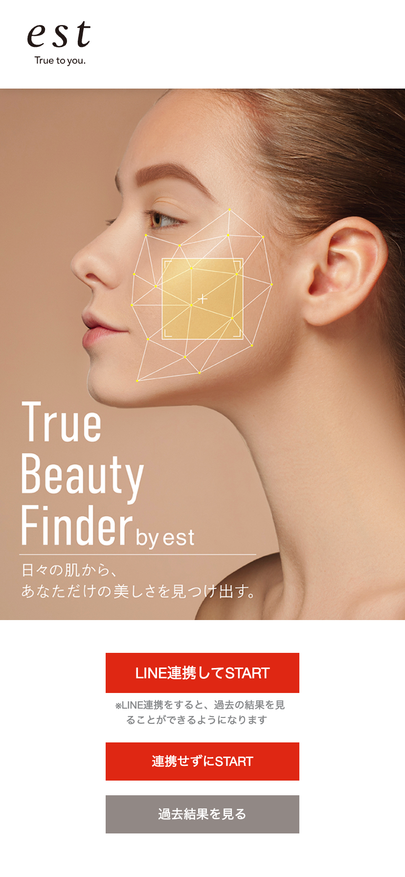 オンライン上での商品購入の前に、「True Beauty Finder by est」で肌解析をしていただくことでご自身の今の肌状態に合ったお手入れ方法を知ることができます。