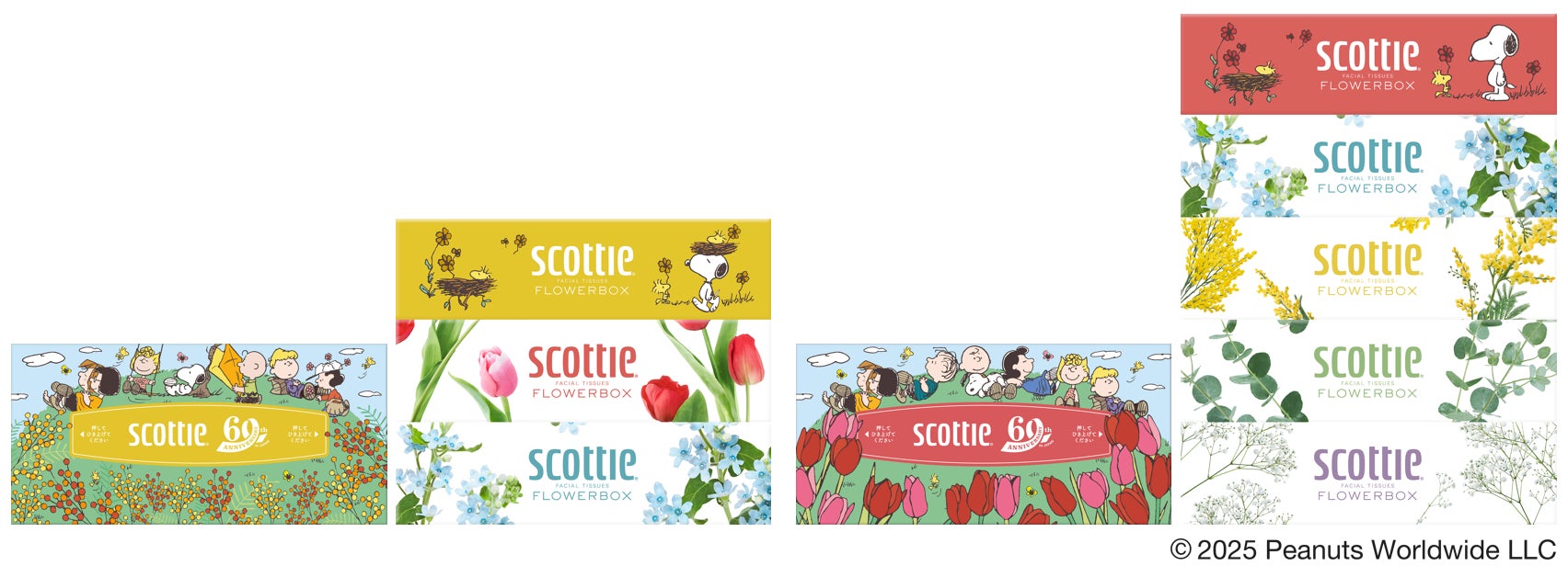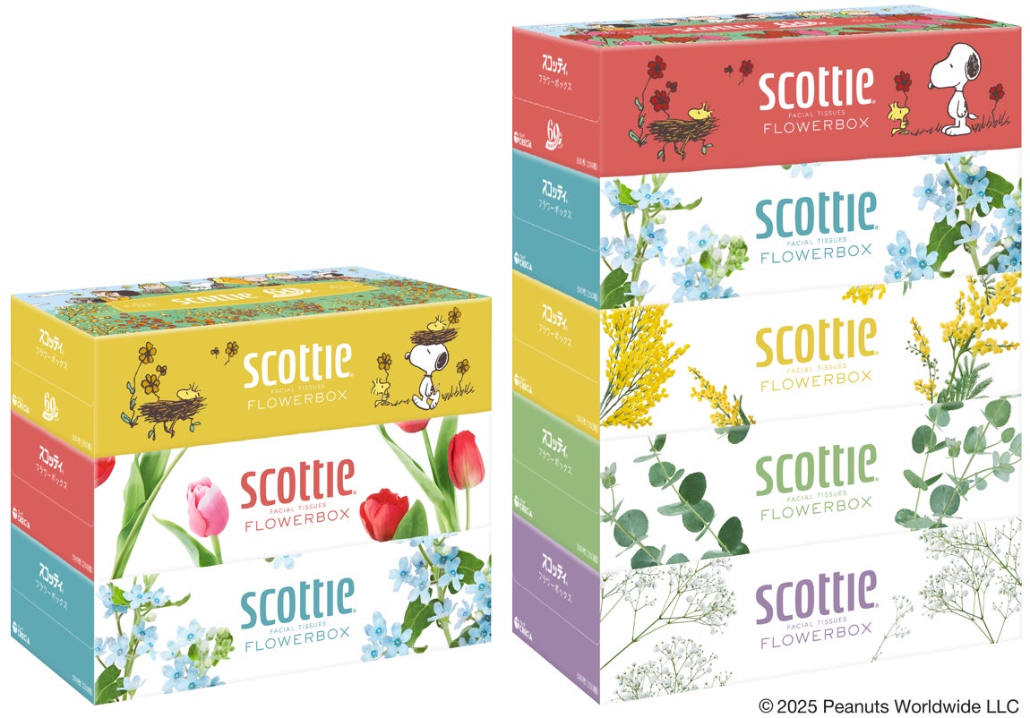 日本製紙グループの日本製紙クレシア株式会社〔住所:東京都千代田区神田駿河台4-6、代表取締役社長:安永敦美〕は、幅広い世代に人気のキャラクター“スヌーピー“デザインパッケージの『クリネックス ティシュー ローション 肌うるる ソフトパック 120組/240組 スヌーピー』と『スコッティ フラワーボックス 250組 3箱パック/5箱パック スヌーピー』を2025年2月1日(土)より数量限定で発売いたします。