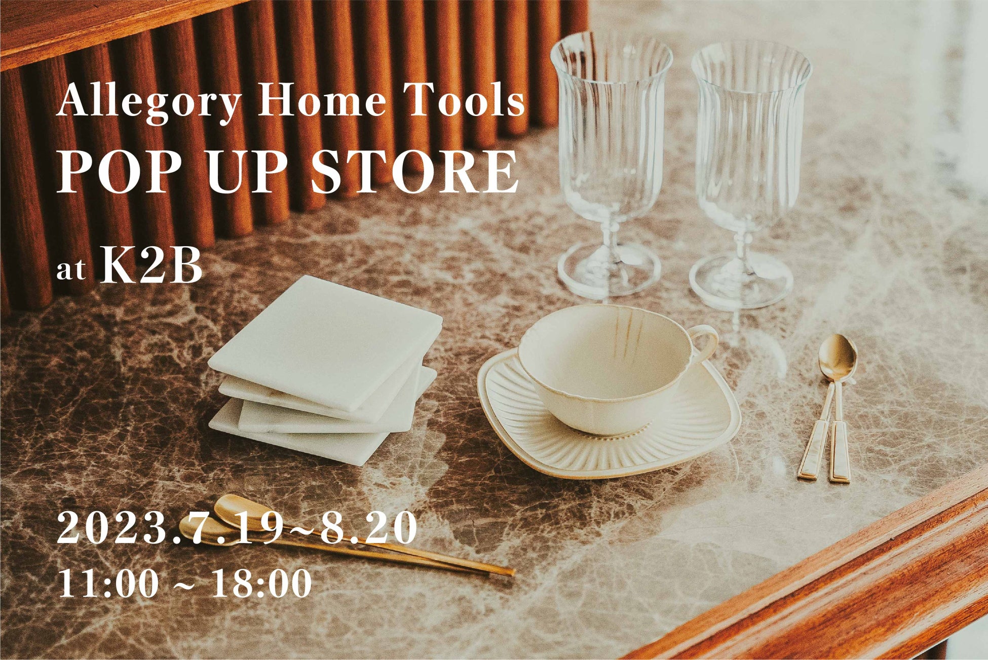 この度、K2B初のイベントとして、2023年7月19日(水)〜8月20日(日)までの期間限定で「Allegory HomeTools (アレゴリーホームツールズ)」のポップアップを開催。K2Bの1Fフリースペースにて展示・販売をいたします。