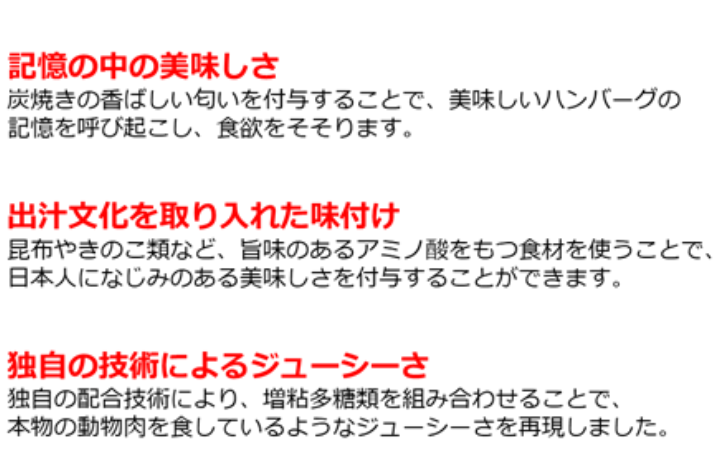 世界の消費者に安全、安心で美味しい植物肉を使用した製品を、競争力のある価格や品質にて提供するために、3社が共創し、新しい価値を創造します。