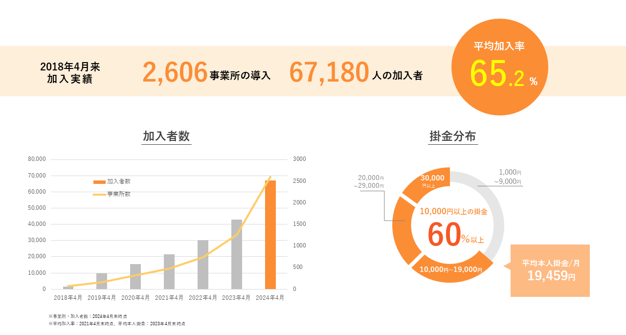 「はぐくみ企業年金」は厚生年金被保険者であれば、従業員(非正規雇用含む)でも役員でも加入可能な企業年金基金で、事業主側はコストを抑えながら企業年金・退職金制度を構築することができます。企業年金・退職金制度の充実が従業員満足度向上・離職率低下につながることから、特に人手不足が深刻化している福祉業界において、人材定着をはかるための福利厚生のひとつとしてご好評いただいています。
