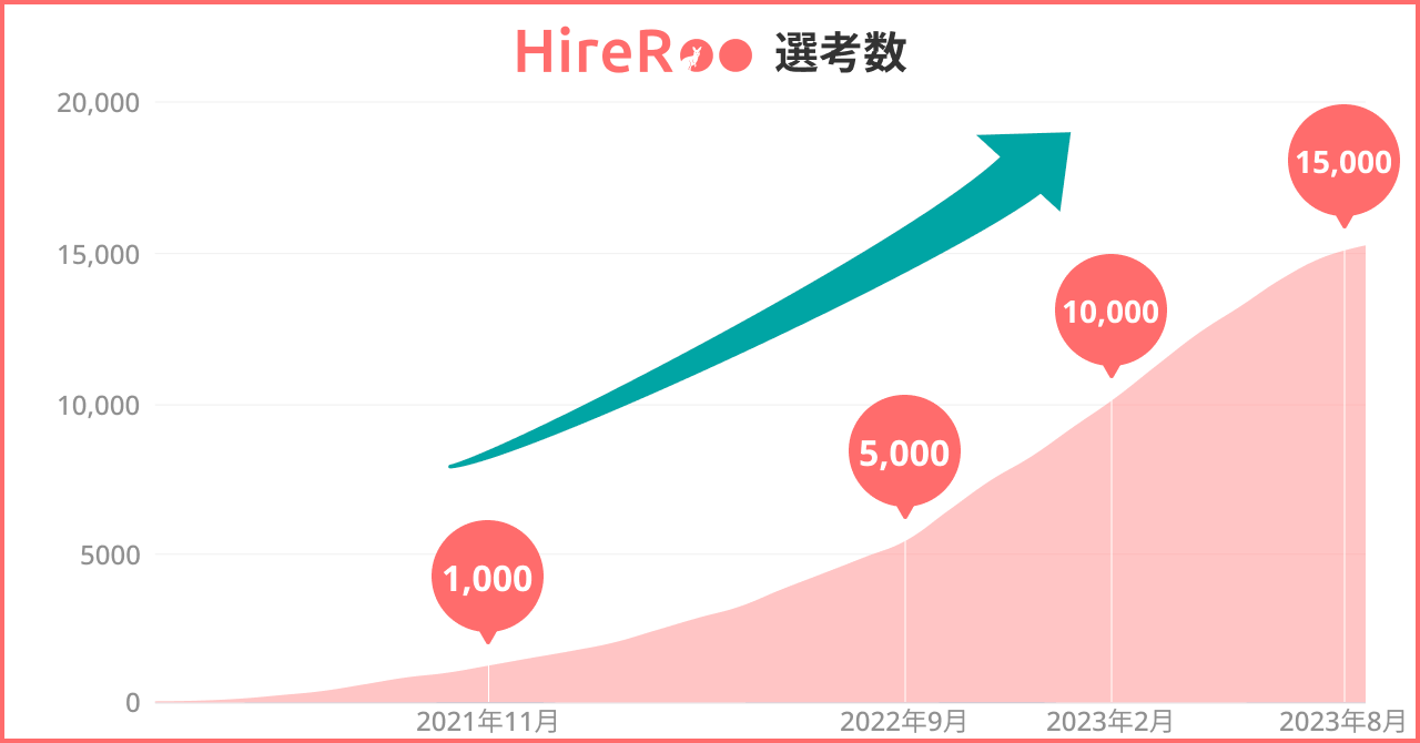 2021年3月末よりβ版、2022年1月に正式版を提供し始めてから多くの企業さまに導入いただき、2023年8月に選考数15,000を突破いたしました。