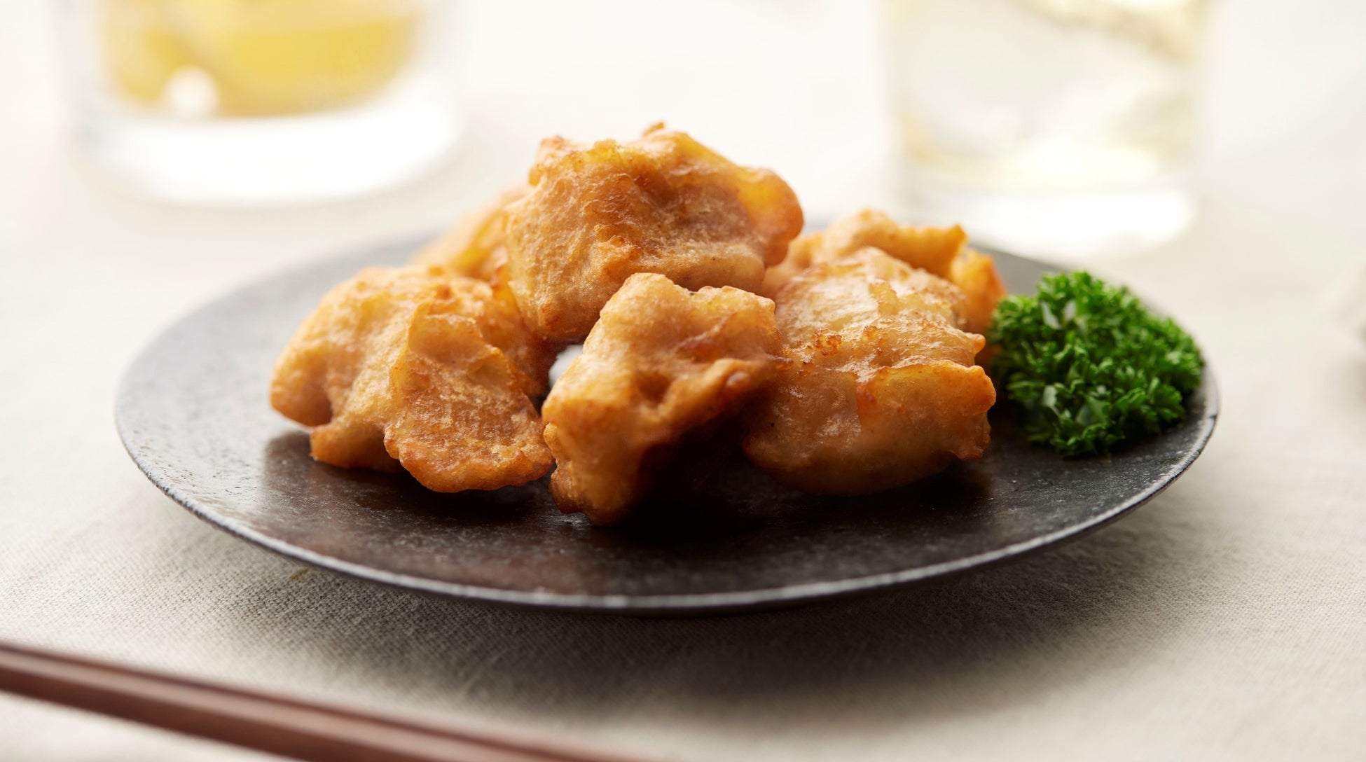 豆腐や豆乳の副産物「おから」と日本の伝統食である「こんにゃく」を組み合わせた「おからこんにゃく®」で作ったからあげです。