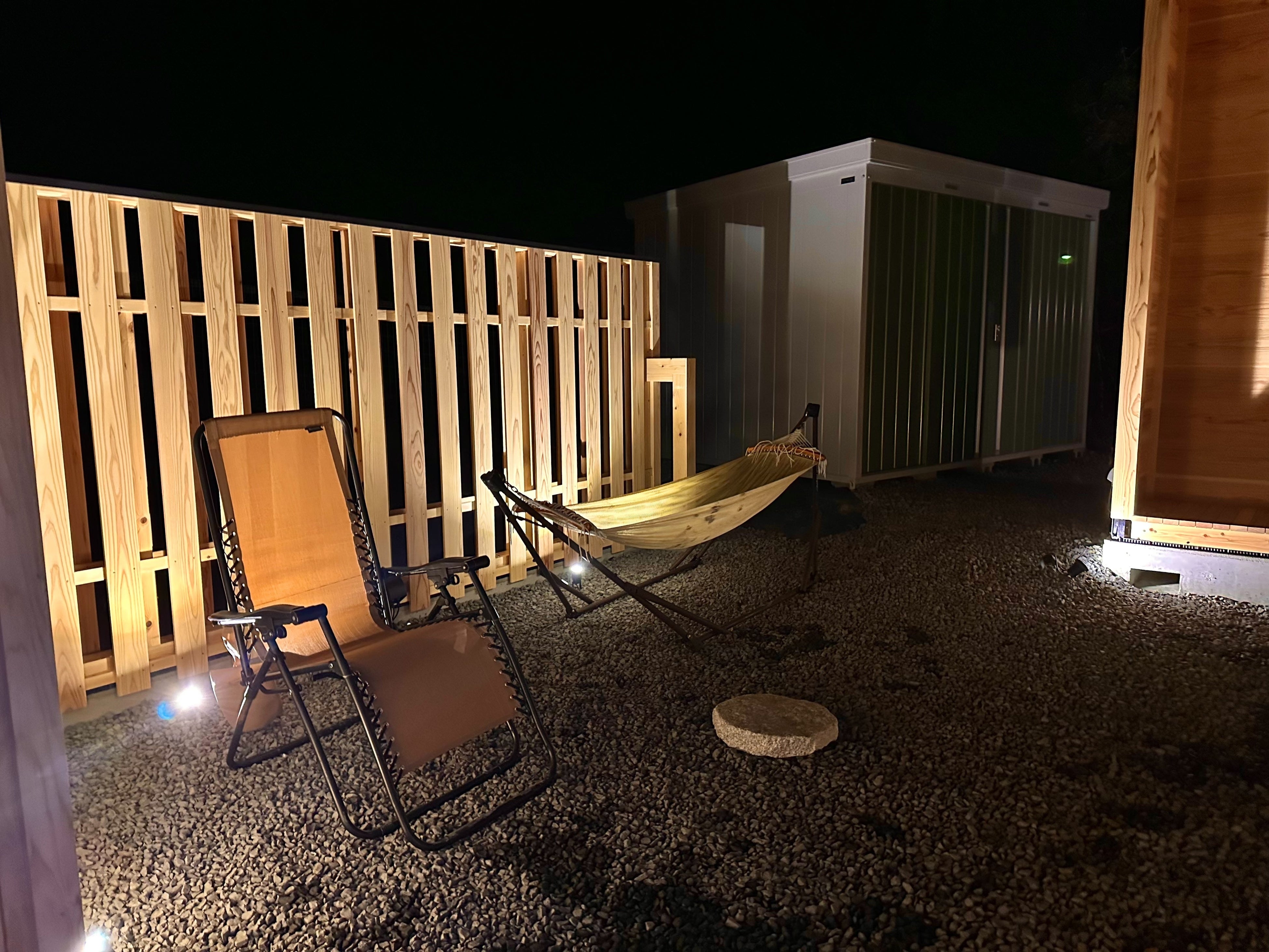 すでに温められている中に入る一般的なサウナと異なり、薪割りや火入れなど、お客様ご自身で一から作り上げられるサウナです。1組限定の貸し切り宿なので、私語や寝転がることは禁止されておらず、普段縛られているマナーから解放され、自由に楽しむことが可能です。サウナのすぐ横に露天の水風呂もご用意しており、”サウナ⇋水風呂”のサイクルを何度でも堪能できます。