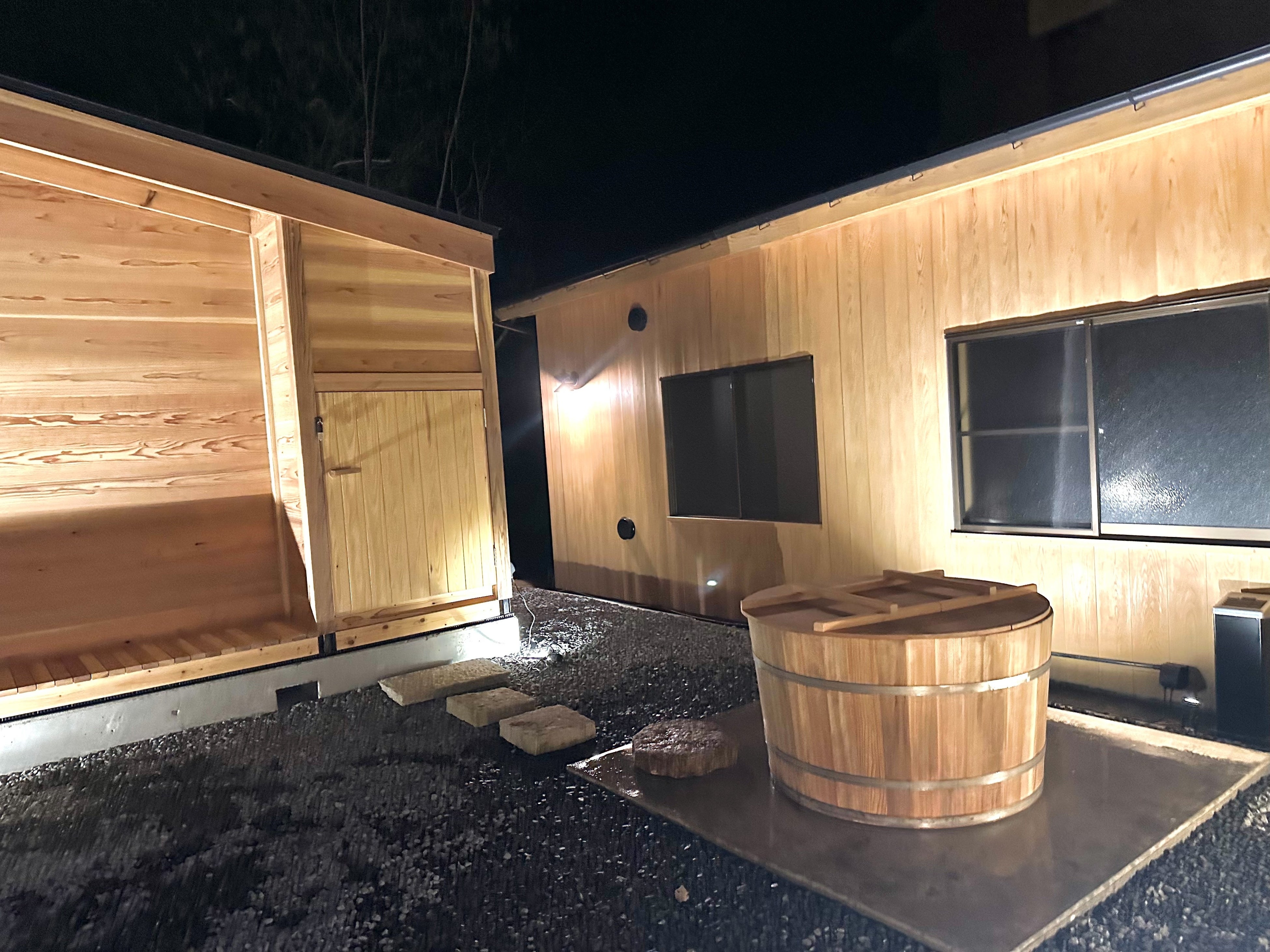 サウナ内はあえて照明をほとんど入れず、ほの暗い空間でストーブの火を見つめることで、禅や瞑想のように”無になる瞬間”を生み出します。家族や仲間と一緒にいながらも、自分自身と対話する時間を持てば、日々のストレスがリセットされ、本来の自分を取り戻すことができるでしょう。熊野古道のメインルート・中辺路沿いには現状、当宿が把握している限り、他にサウナ施設はありません。熊野古道を歩き、サウナに入って心身ともに“リトリート”するという、一連の流れが出来上がれば、新たな巡礼文化が誕生すると確信しています。