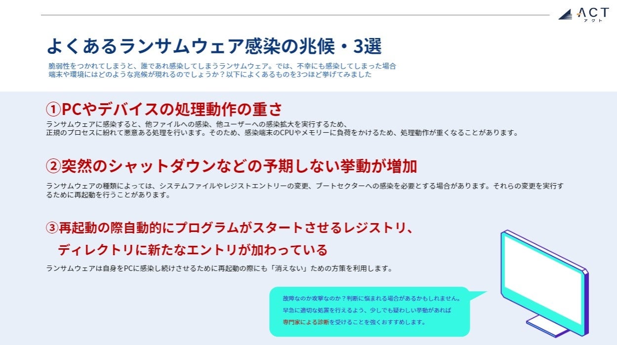 アクト、ホワイトペーパー「ランサムウェア感染の兆候」を公開