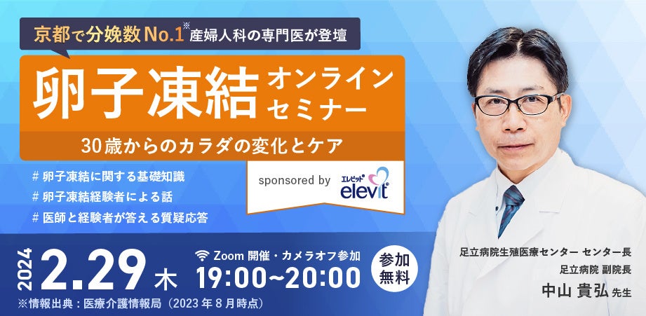 卵子凍結オンラインセミナー ~30歳からのカラダの変化とケア~sponsored by エレビット®開催日時:2024年2月29日(木) 19:00~20:00