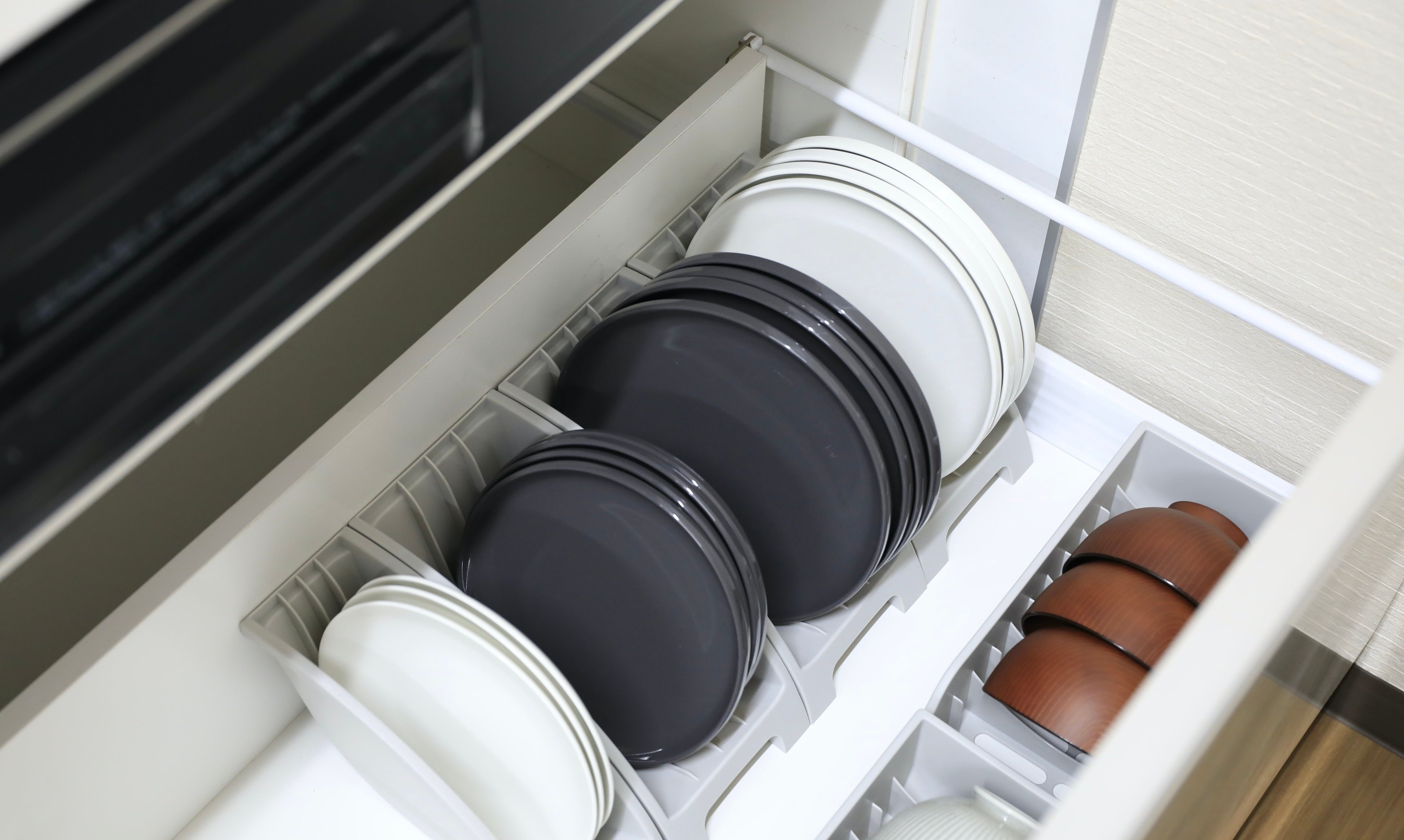 引き出しタイプ・戸棚タイプどちらにも対応し、食器の収納周りをスッキリさせて使いやすくしてくれるディッシュスタンドシリーズになります。