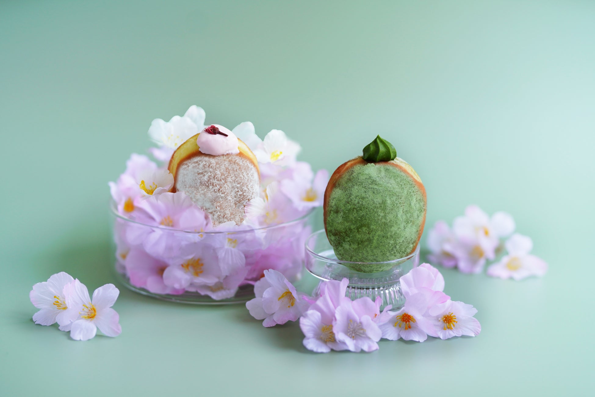 \新登場/春限定「桜抹茶ボンボローニ」桜色が彩る濃厚抹茶スイーツで見ても食べても大満足の一品。宇治抹茶をふんだんに使用した特別な抹茶ドリンクとともにお楽しみください。