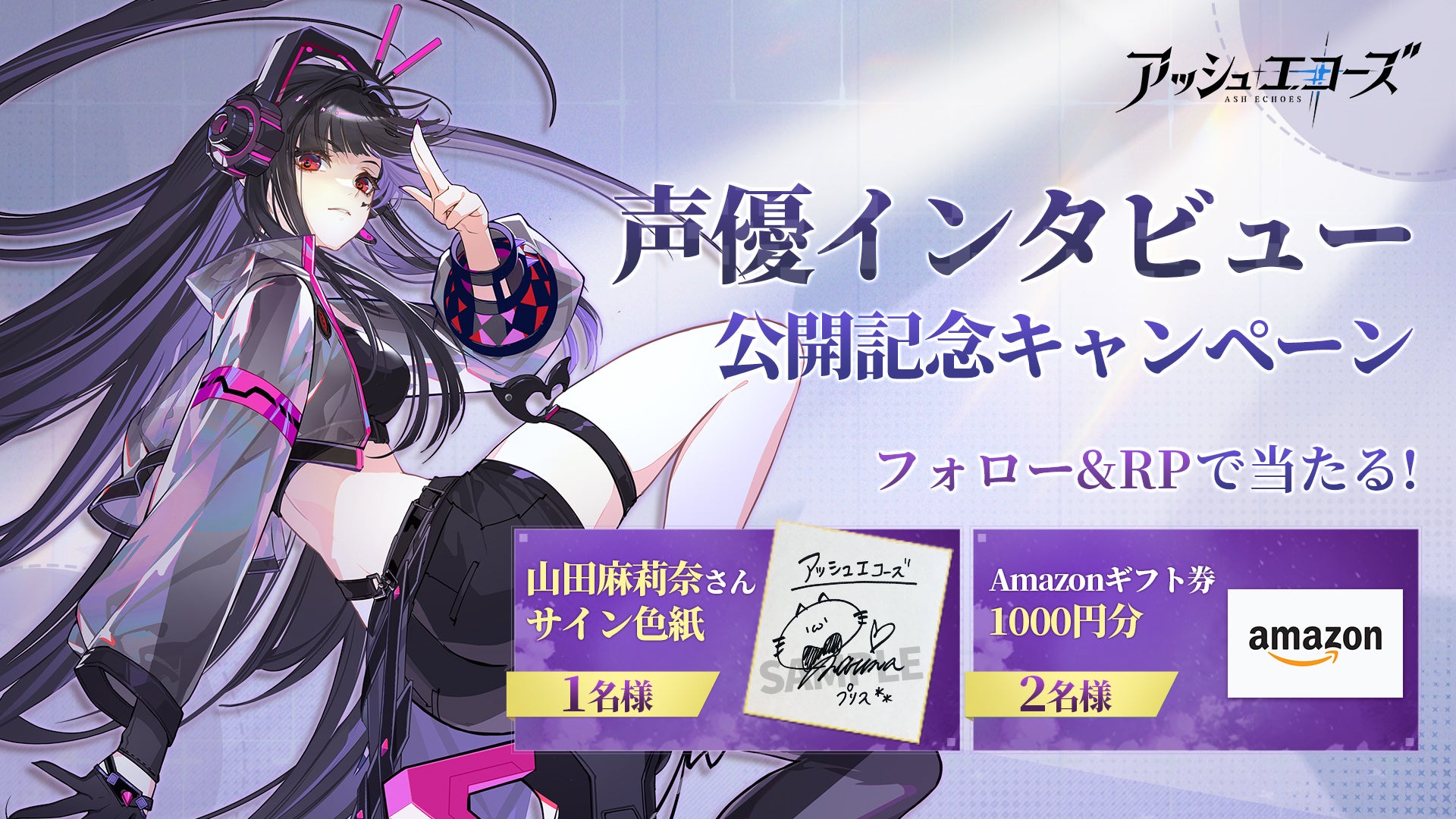 キャンペーン内容:フォロー&RPで、抽選で1名様に山田麻莉奈さんのサイン色紙、2名様に1000円分のAmazonギフト券 をプレゼント