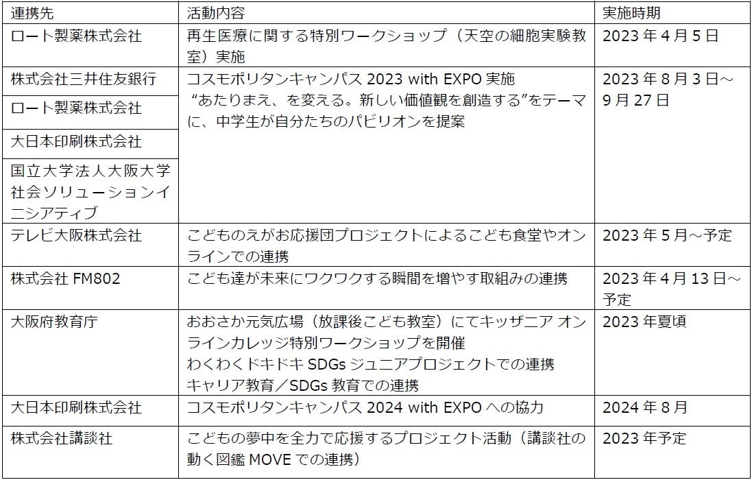 ※3 ロート製薬株式会社、株式会社三井住友銀行、テレビ大阪株式会社、株式会社FM802、大日本印刷株式会社、株式会社講談社、国立大学法人 大阪大学 社会ソリューションイニシアティブ、大阪府教育庁(順不同)