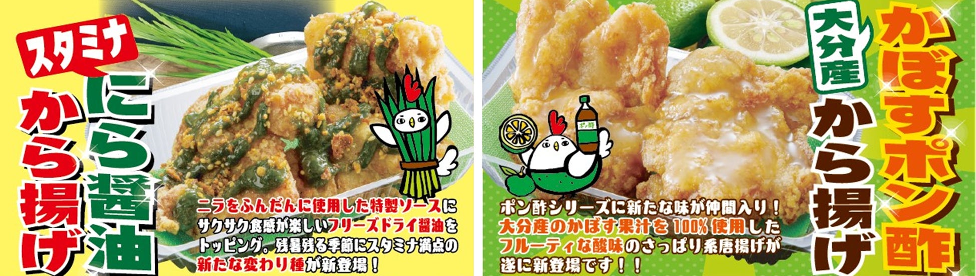 ■商品 :「にら醤油から揚げ」、「かぼすポン酢から揚げ」