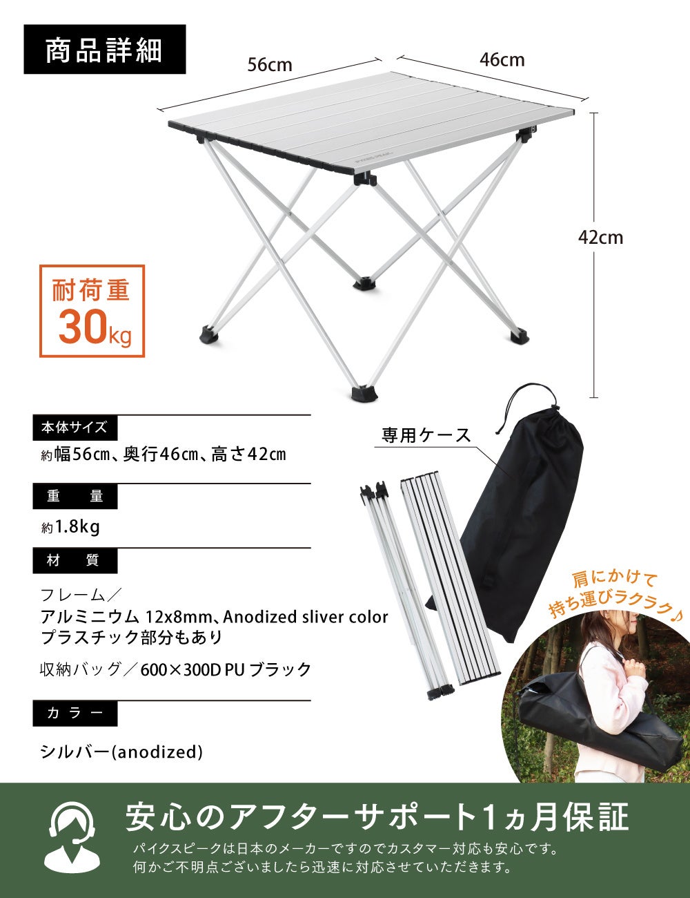棒状に収納できるので持ち運びに便利です。車での運搬もちょっとした隙間があれば、スッと収まり、面積が広い折りたたみ式のテーブルと比べると圧倒的にコンパクトです。持ち運びに便利な専用ケース付きで、ソロキャンプやツーリングにも持っていきやすいサイズです。