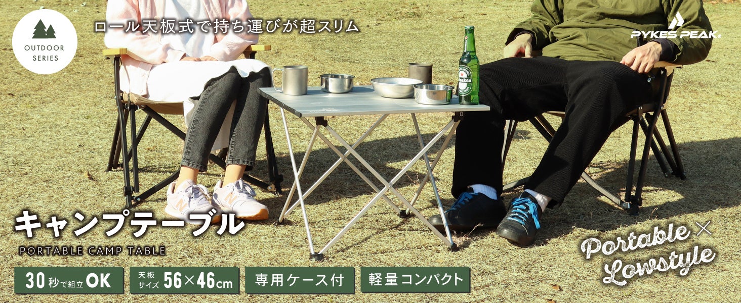 【先着100名様限定超早割り25%オフキャンペーン実施中】【キャンプテーブル】PYKES PEAKが【新商品】「アウトドアテーブル 折り畳みロール式」を予約販売中!