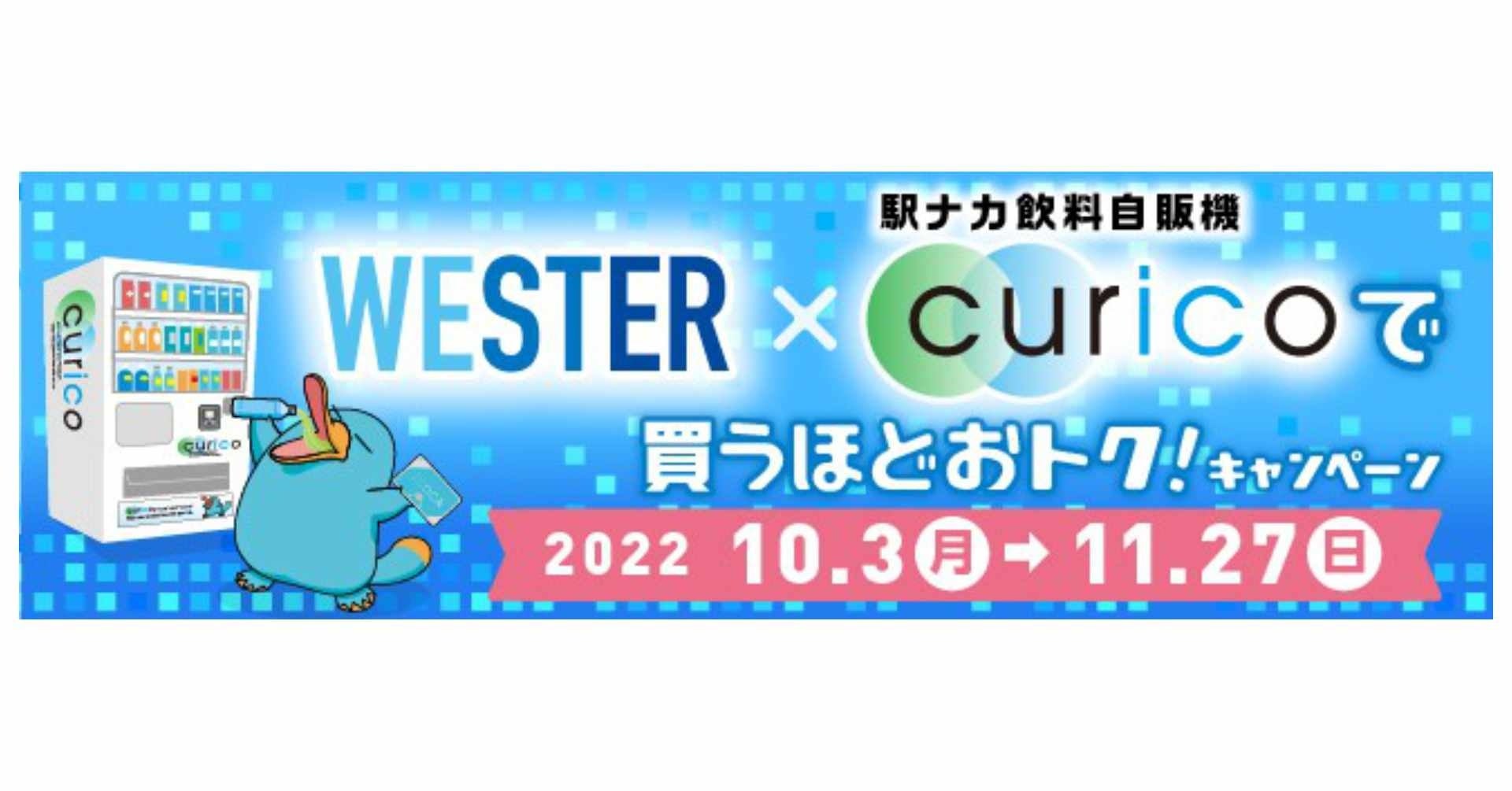 株式会社ギックス(本社:東京都港区、代表取締役 CEO:網野 知博、以下「ギックス」)、西日本旅客鉄道株式会社(本社:大阪府大阪市、代表取締役社長:長谷川 一明、 以下「JR西日本」)、株式会社ジェイアール西日本デイリーサービスネット(本社:兵庫県尼崎市、代表取締役社長:中西 豊、以下「デイリーサービスネット」)は、JR西日本が提供する新常態をサポートするMaaSアプリ「WESTER」およびギックスが提供する個客選択型スタンプラリー「マイグル」を活用した「WESTER×駅ナカ飲料自販機curicoで買うほどおトク!キャンペーン」を開催いたします。