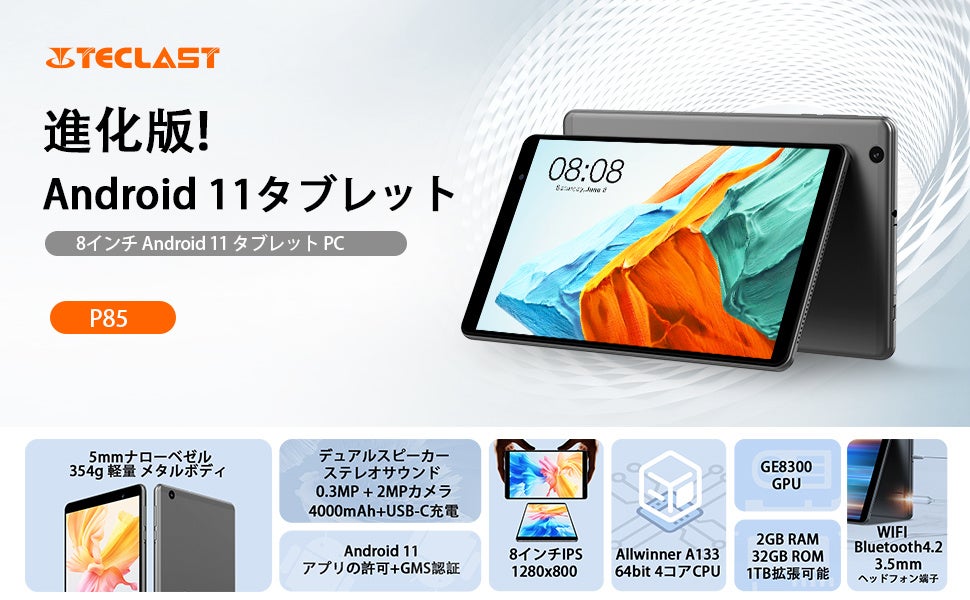 最先端のAndroid 11システムを搭載するために、ユーザーのプライバシー保護とアクセス制御という機能をさらに強化しています。また、Android 11システムの機能も更新・アップグレードされており、新機能のご利用をお試しいただけます。ストレージは2GB+32GBで、Micro SDカードを使用すると、より大きな容量に拡張できます。仕事にとってちょっと不足かもしれなく、日常で映画、ドラマや電子辞書を見ることなど十分だと思いますね。子供にも最適。