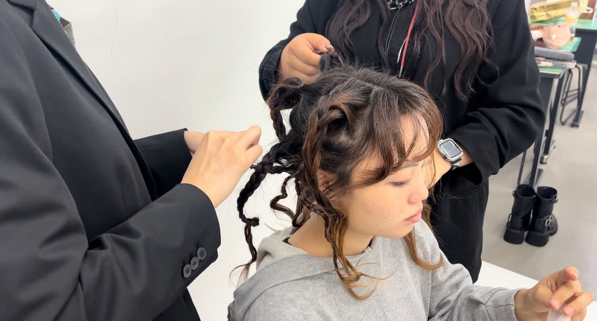内容:学生たちが、店頭をファッションスタイリスト現場と見立て、メイクアップを含めたヘアスタイリングを実践。ヘアアレンジや終了後のオフの際に「ナノケア」を使用します。