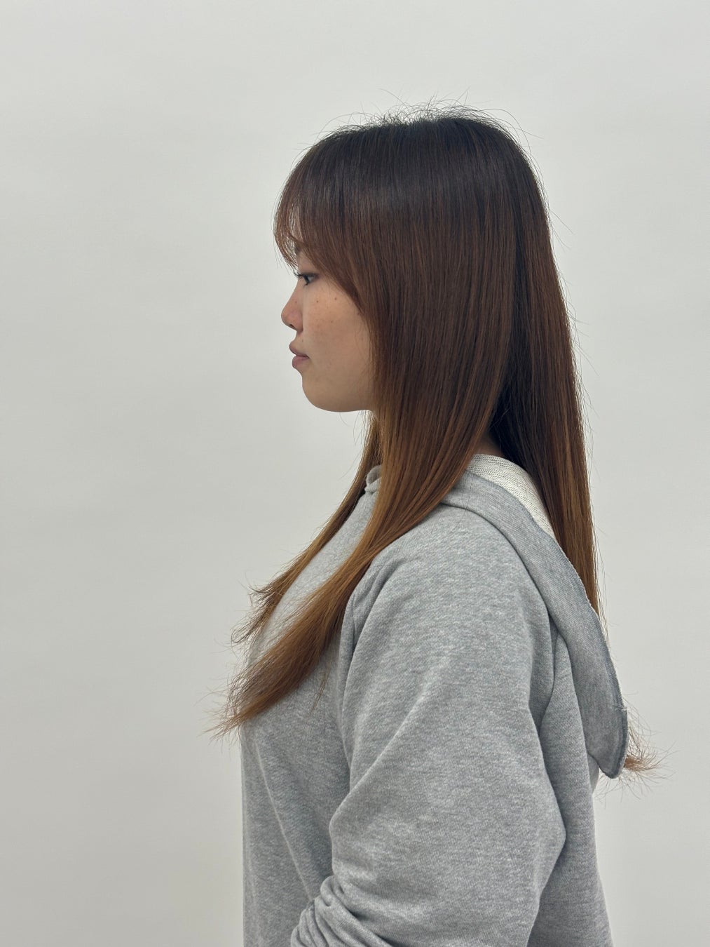 アレンジ後の髪を「ナノケア」を使用してオフ。ダメージを抑えながら美しい髪を保ちます。