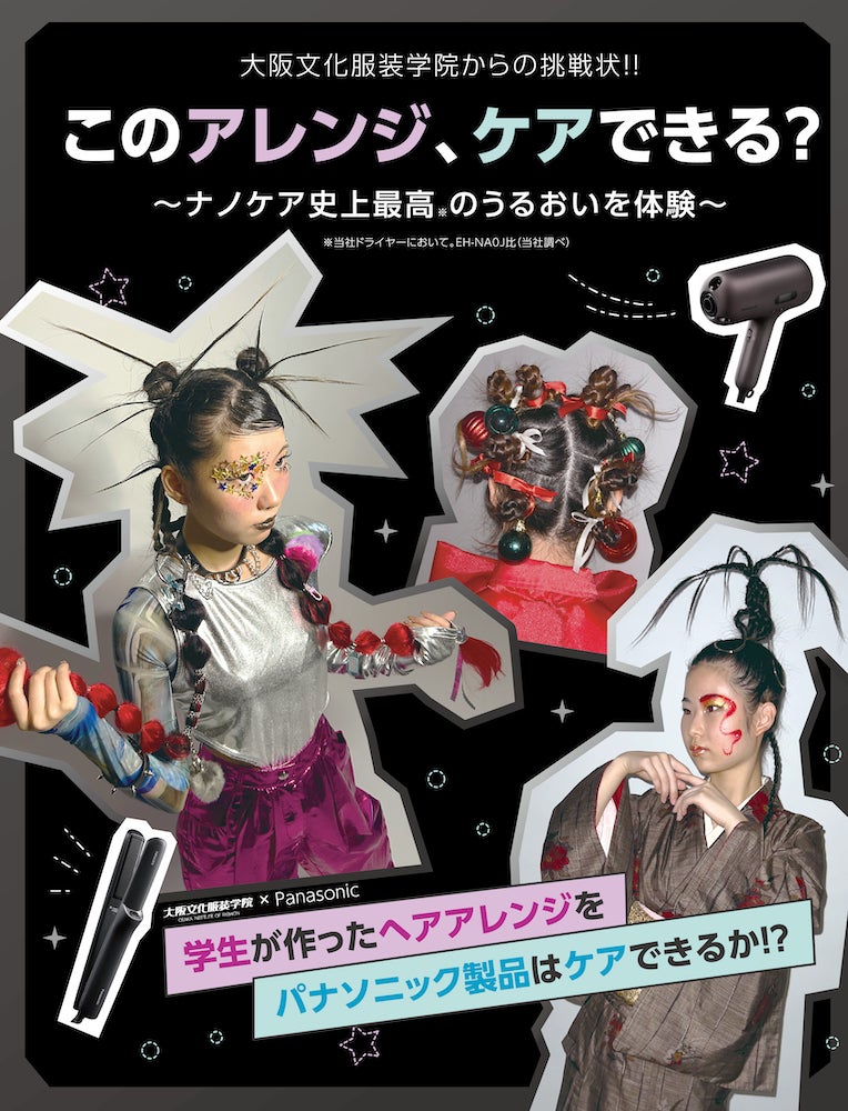 デザイナーおよびファッション人材を育成する大阪文化服装学院(以降OIF、学校法人ミクニ学園 理事長:豊田晃敏 所在地:大阪市淀川区三国本町)のスタイリスト学科ビューティ&スタイルコースは、世界的な家電メーカーであるパナソニックマーケティングジャパン株式会社(以降パナソニック)からの依頼を受け、同社のハイスペック美容家電「ナノケア」シリーズ製品(以降ナノケア)を若者層に訴求する企画を手掛けています。