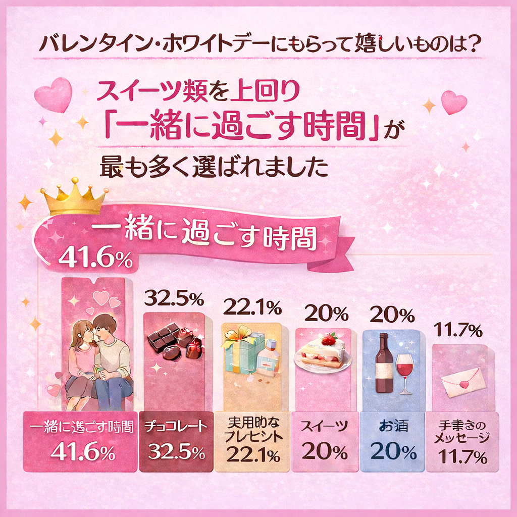 スイーツ類を上回って「一緒に過ごす時間」が最も多く選ばれました(41.6%)