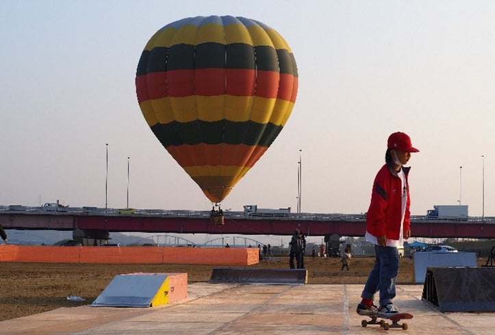 スケートボード体験をはじめ、気球搭乗体験などを家族で楽しめるイベント「わくわくプロジェクト vol.2~河川敷巨大公園化プロジェクト」
