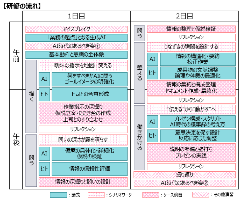 本研修は、 2 日間のプログラムを通じて受講者自身の AI パートナーを育成するアプローチを採用しています。