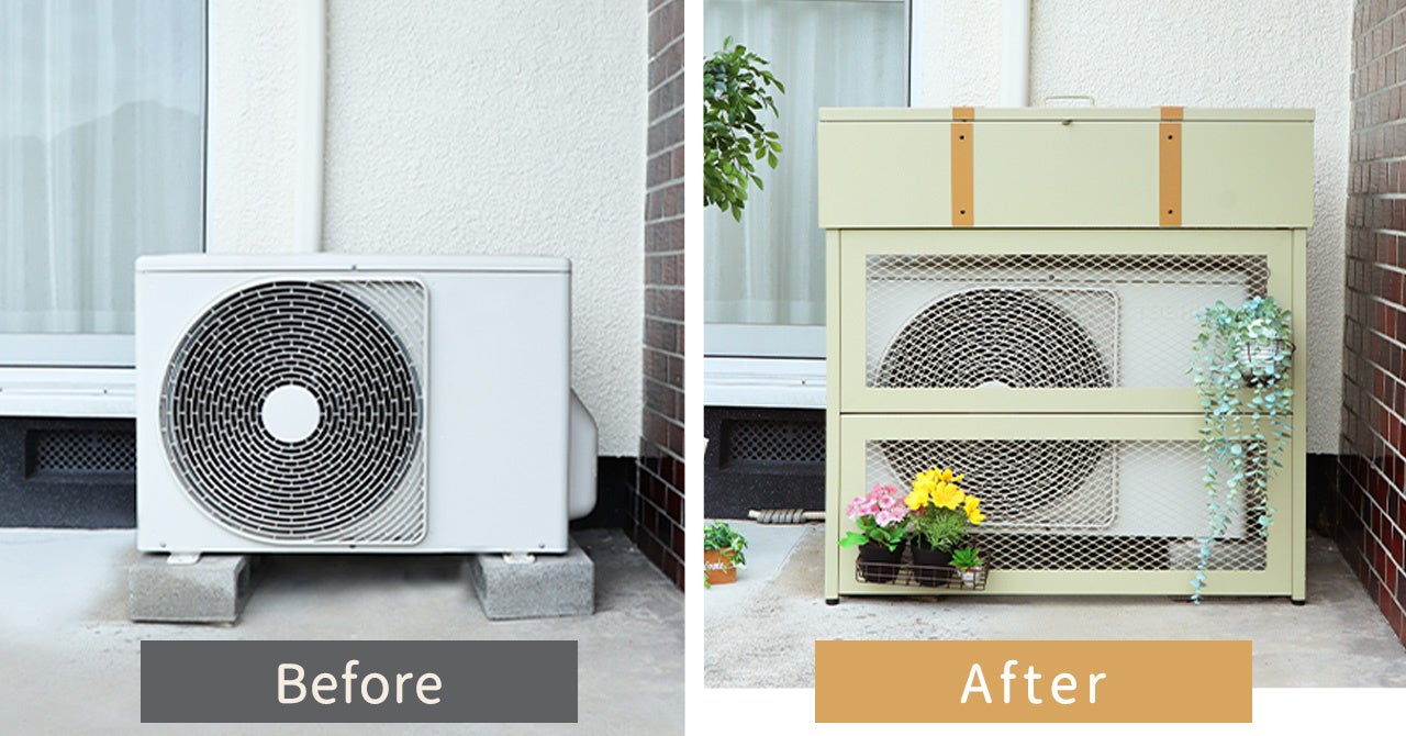 「ヤマソロ」エアコンの室外機をおしゃれにカバー!しかも収納庫付き