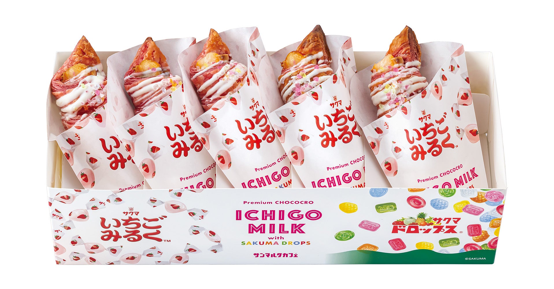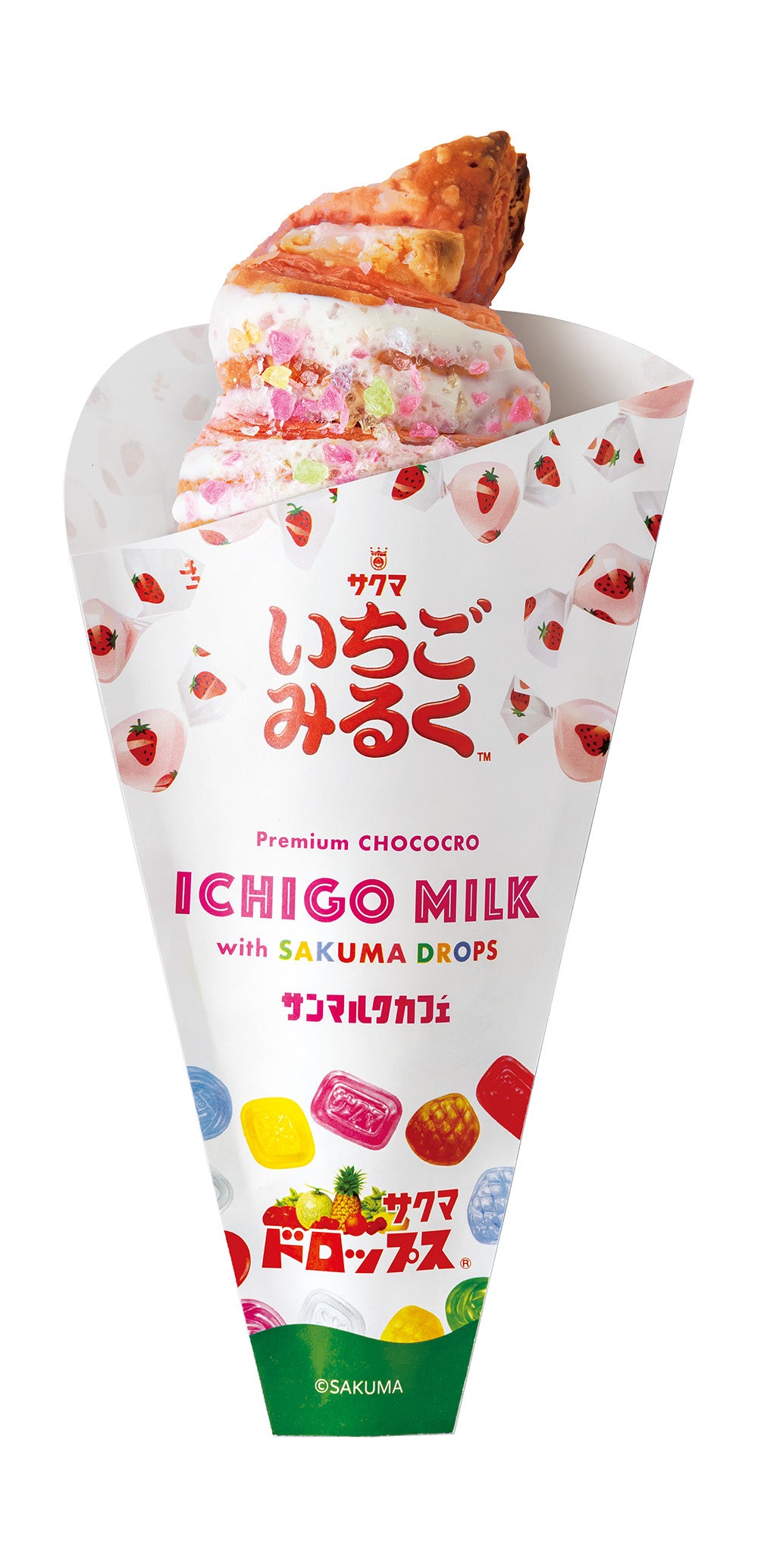 「いちごみるく」の優しい甘さとザクザク感、「サクマドロップス」ならではの宝石のようなキラキラ感を一度に感じられる、唯一無二のプレミアムチョコクロとスムージー2種が登場
